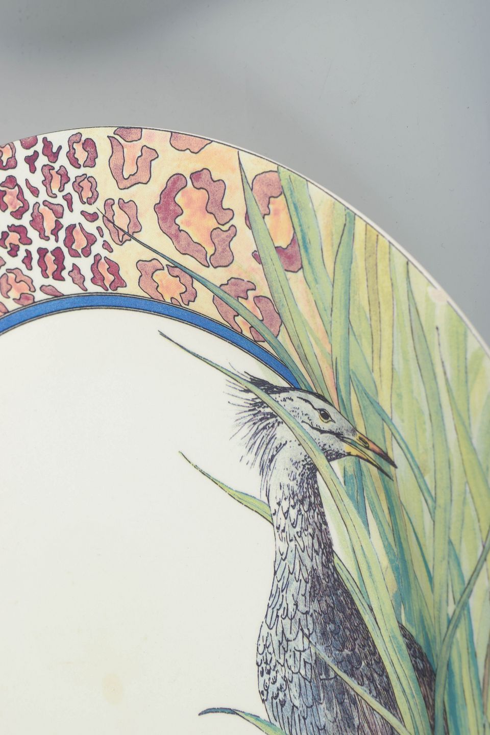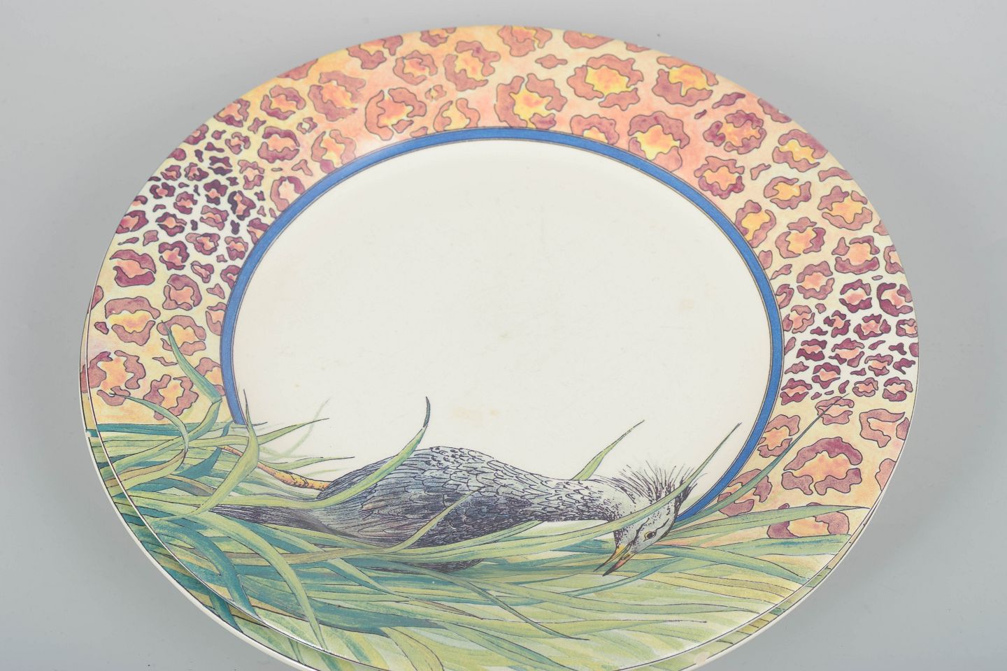 Three decorative faience dinner plates by Gien in the distinctive “Savane” pattern with its colourful border and naturalistic motif. A beautifully preserved set.