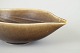 Hand-thrown stoneware bowl with an organic, leaf-like form and a warm brown-yellow nuanced glaze, characteristic of Saxbo’s refined and understated stoneware aesthetic of the period.