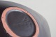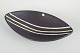 Ceramic bowl from the iconic “Trio” series, decorated with graphic lines in white and yellow on a dark ground. Elegant, elongated form characteristic of Oldfors’ modernist style.