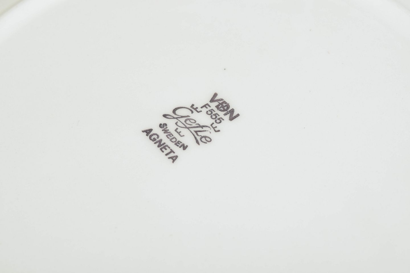 Gefle (Gefle Porslinsfabrik), grundlagt i 1910 og senere en del af Upsala Ekeby, skabte i 1960’erne og 70’erne en række populære stel med stærke grafiske udtryk. Agneta-serien er blandt de mest kendte og afspejler fabrikkens tidstypiske kombination af klare farvefelter og botaniske motiver, som i dag gør serien eftertragtet blandt retro-samlere.