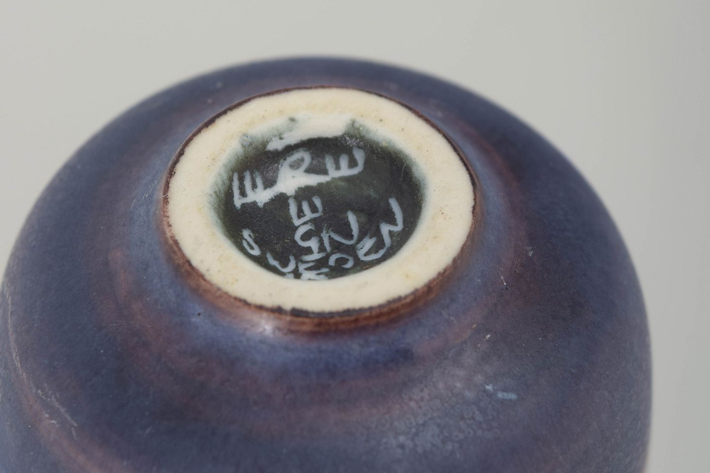 Gunnar Nylund (1904–1997) was one of Rörstrand’s most important designers and a key figure in shaping Swedish modernist ceramics. His work ranges from industrially produced series to unique, hand-thrown pieces, often marked by experimental glazes and harmonious proportions. Nylund’s miniature vases are highly collectible today for their refined aesthetic and artistic quality.