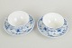 Sæt bestående af 2 tekopper med tilhørende underkopper i Musselmalet halvblonde. Klassiske riflede former med blondekant og håndmalet koboltblå dekoration. Et elegant og funktionelt tesæt fra sen produktion, velegnet til både brug og samling.