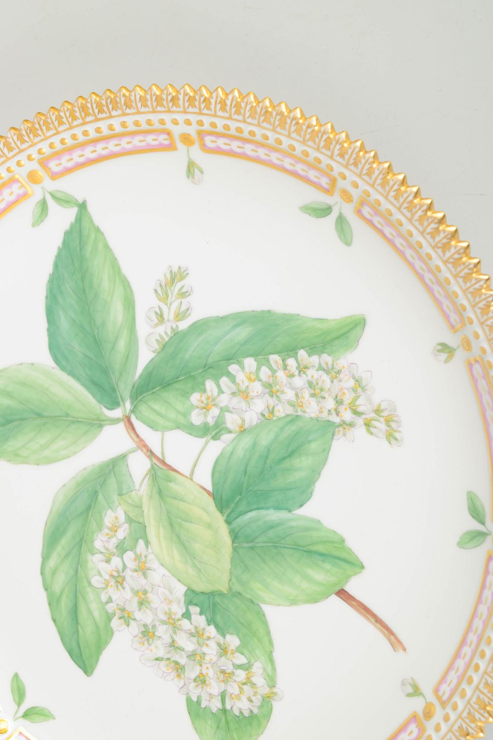 Bio: Flora Danica-stellet blev introduceret i 1790 og regnes blandt Royal Copenhagens mest prestigefyldte produktioner. Dekorationerne er baseret på det monumentale botaniske værk Flora Danica og er kendetegnet ved høj detaljerigdom og fremragende håndværksmæssig kvalitet. Bakker og fade blev anvendt både praktisk og dekorativt ved det forfinede bord og er i dag eftertragtede samlerobjekter.