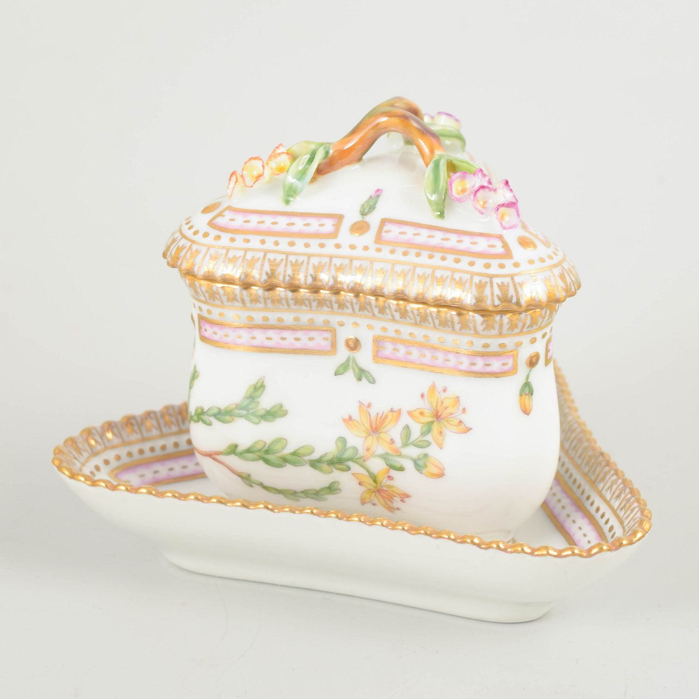Bio: The Flora Danica service was introduced in 1790 and is regarded as one of Royal Copenhagen’s most prestigious productions. The decoration is based on the monumental botanical work Flora Danica and is renowned for its high level of detail and exceptional craftsmanship. Smaller serving pieces such as cream cups formed an integral part of the classic coffee service and today enhance the overall collectability of the set.
