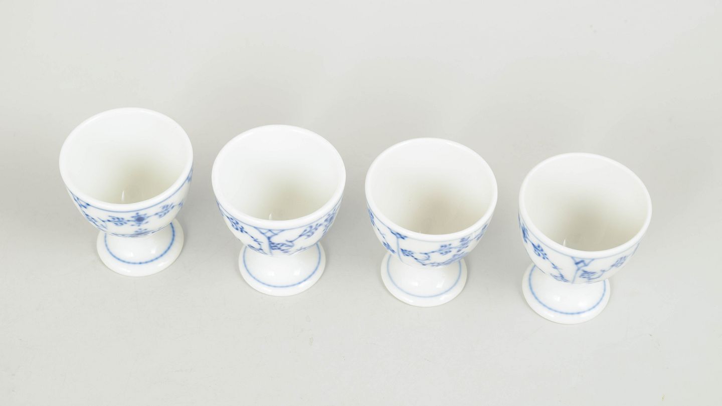 Royal Copenhagen Musselmalet Riflet, sæt af fire æggebægre.
