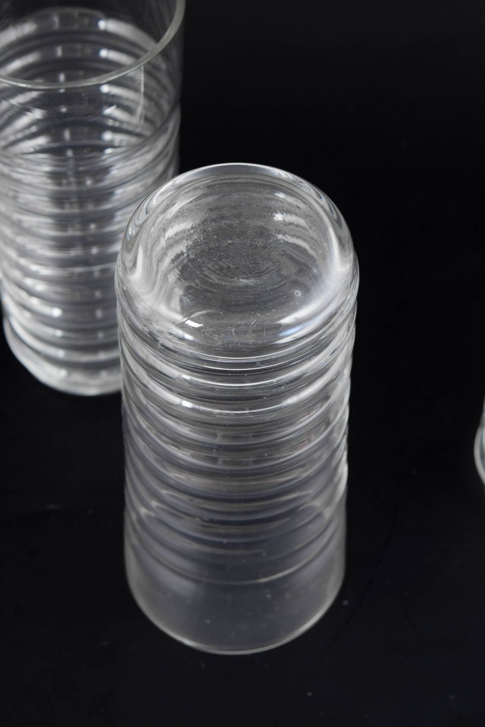 Clear glass from the Perpetum Mobile series with a distinctive ribbed structure and cylindrical form.