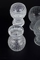 Small schnapps glasses from the Kekkerit series in clear glass with a distinctive textured surface and solid base, designed in the 1970s.