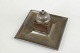 Blækhus i diskometal med kvadratisk bakke, firkantet beholder, riflet låg og original glasindsats. Model 162.