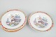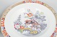 Dybe tallerkener i fajance med orientalsk inspireret dekoration i polykrome farver og detaljerig bemaling i japansk stil, karakteristisk for Rörstrands japanismeproduktion fra begyndelsen af 1900-tallet.