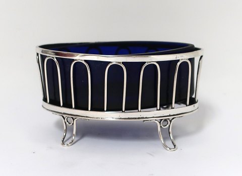 Dänische Arbeit. Kristallschale mit gehämmertem Silberdeckel (830). Durchmesser 16,5 cm. Höhe 14 cm. Produziert 1919.