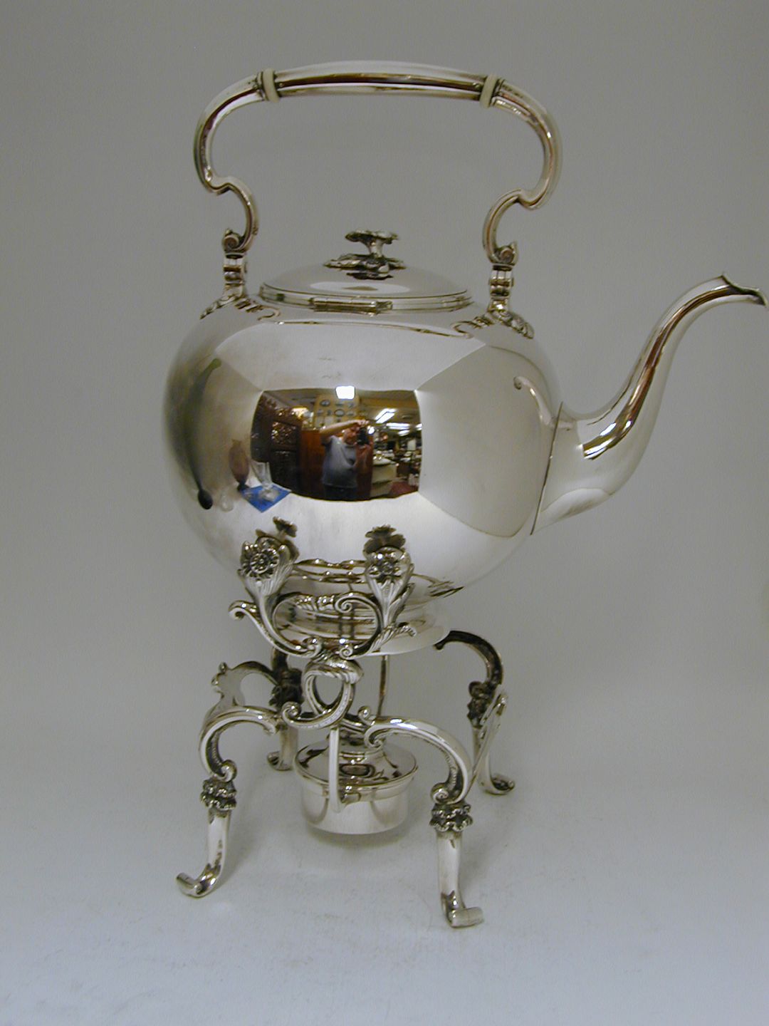 Svingthekande Sølv (830) . Lavet af Samuel Prahl. (1800-1885). Produceret 1860 . Højde 34 cm.