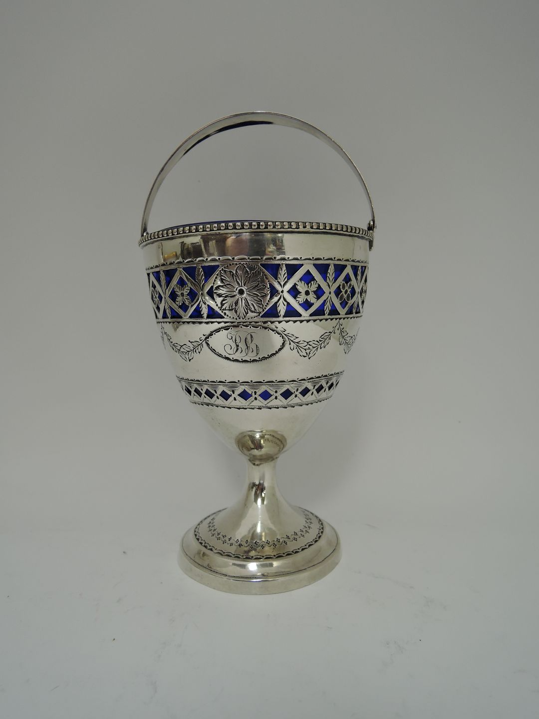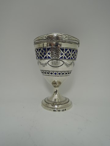 Zuckerdose mit blauem Glaseinsatz. Silber (830). Gestempelt MW (Martin Westrup, Kopenhagen 1763-1838). Produziert 1797 Höhe 14 cm