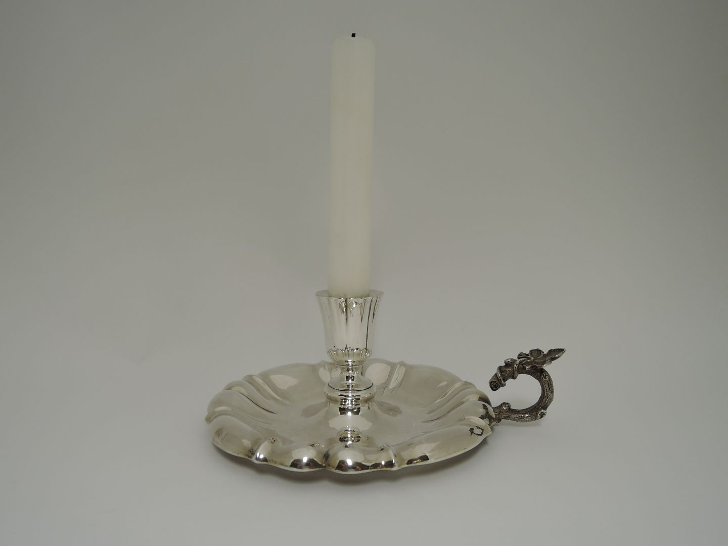 Kammerstager. Sølv (830). Lavet af F. Dahl 1853. Diameter 16 cm. Højde 7 cm.