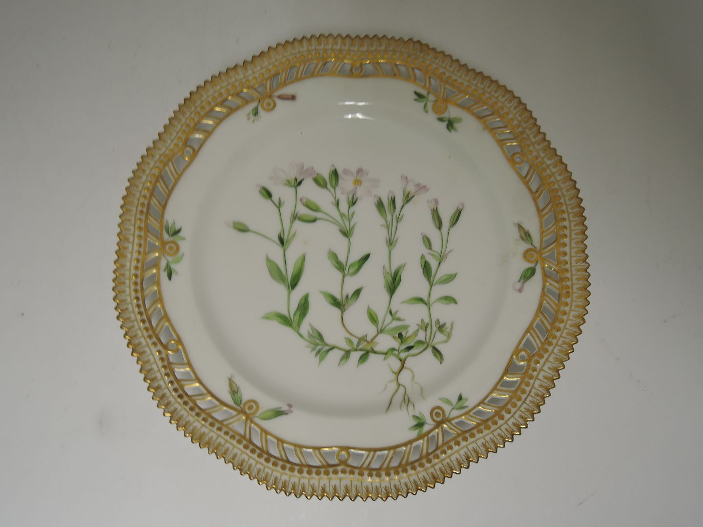 Royal Copenhagen. Flora Danica. Frokost tallerken (3554). Produceret 1894 - 1900. Diameter 22 cm. ( 1 sortering ) Cerastium alpinum