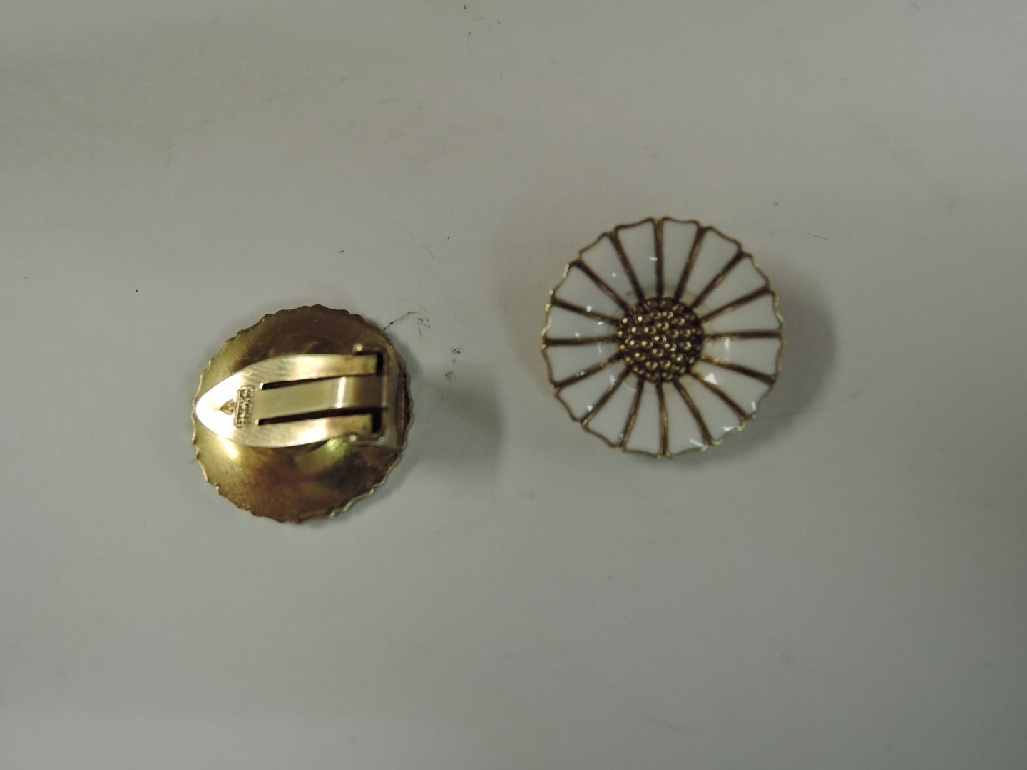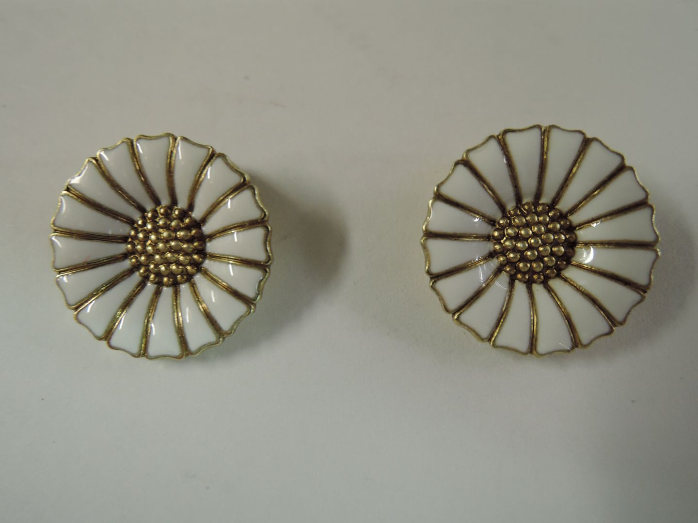 Michelsen. Sterling (925). Marguerit Øreclips med hvid emalje. Diameter 1,7 cm
