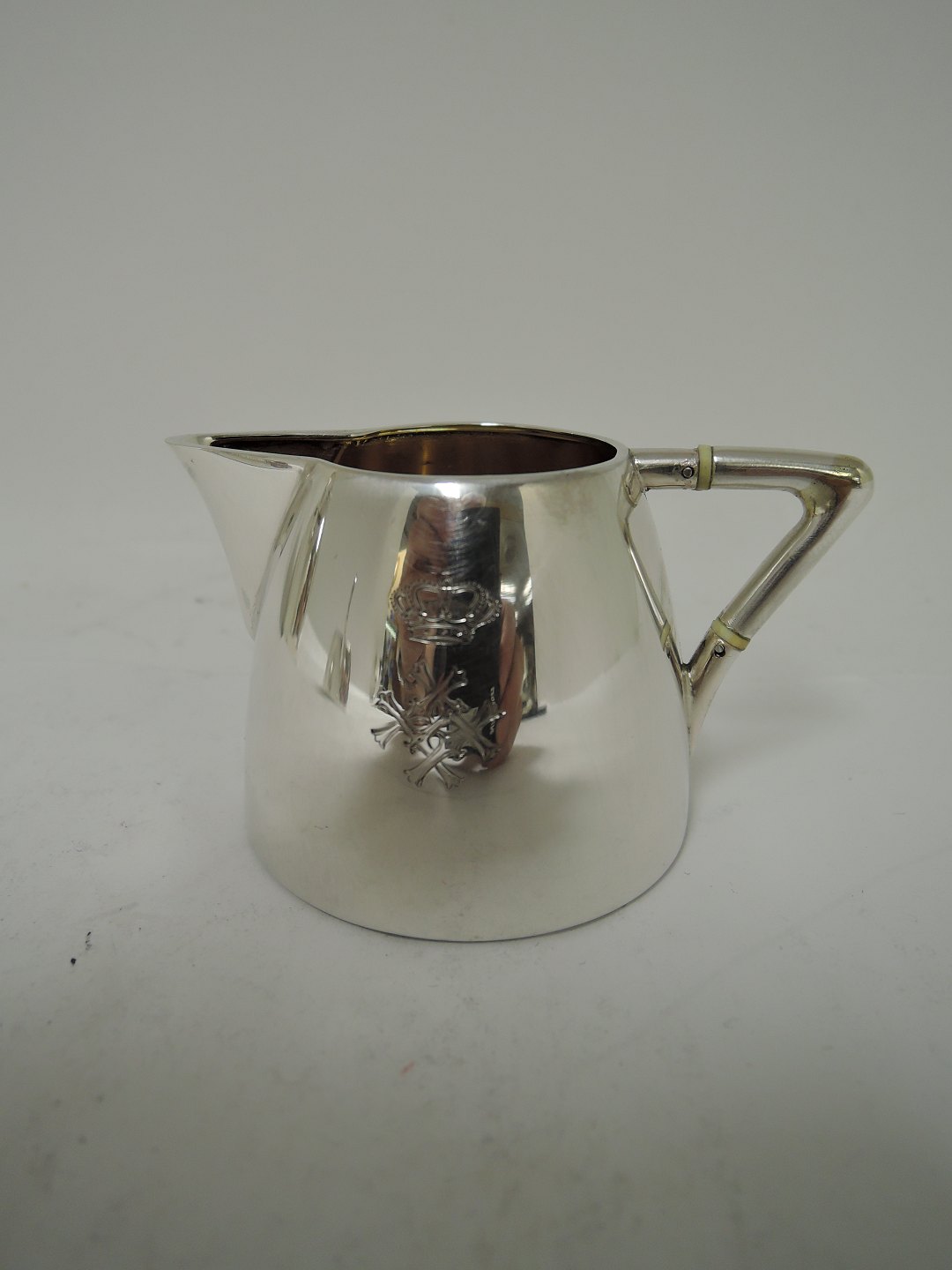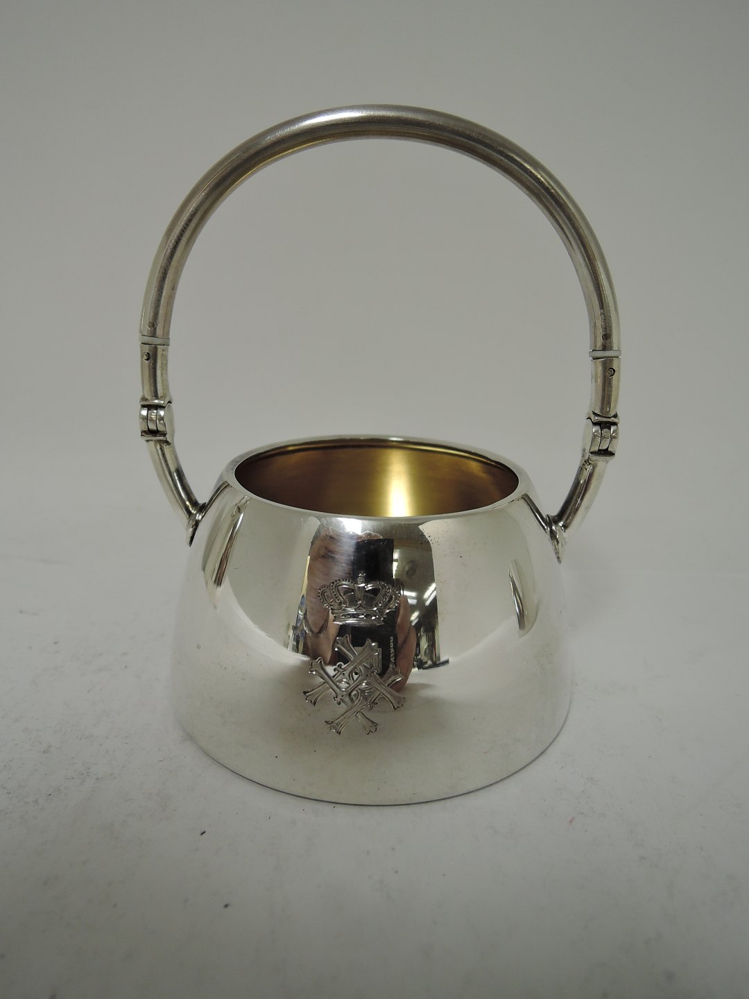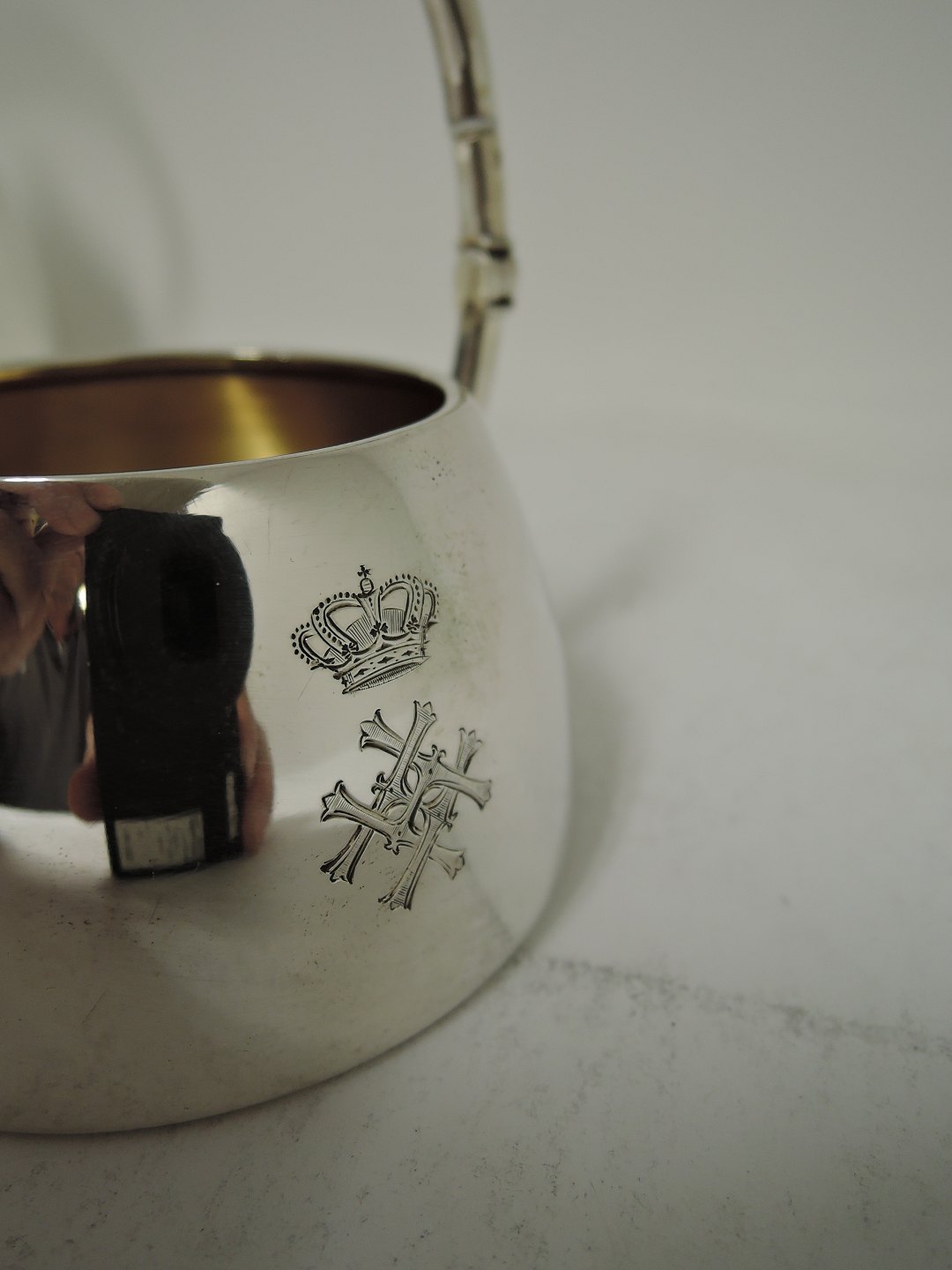 Teeservice. Sterling (925). 3 Teile. Mini-Set mit gekröntem Monogramm HH. Prinz Harald und Prinzessin Helena von Schleswig-Holstein-Sönderborg-Glücksborg. Höhe der Teekanne 15,5 cm. Hergestellt 1906. Vermutlich zu ihrer Hochzeit im Jahr 1909 gegeben.
