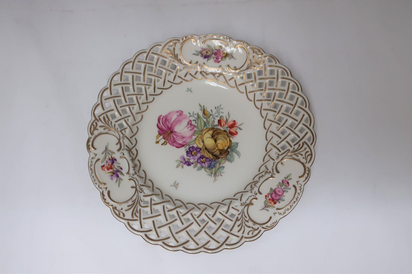 Royal Copenhagen. Saksisk Blomst. Tallerken med gennembrudt kant. Diameter 24 cm. ( 2 sortering )