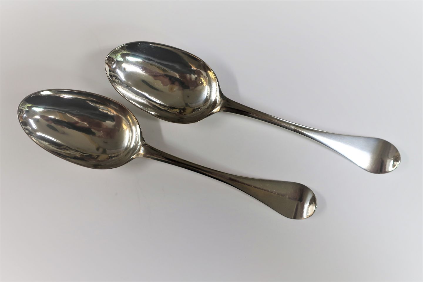 Ålborg. Sølvsmed Børge Mikkelsen. Antikke sølv bryllupsskeer produceret 1765. Længde 20 cm.