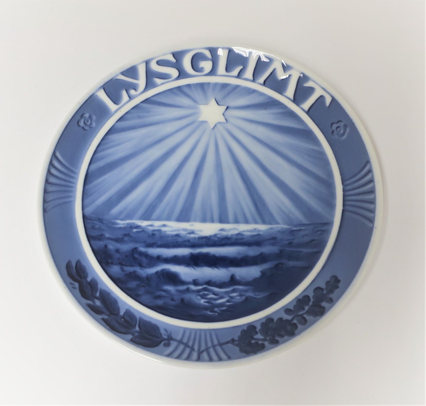 Royal Copenhagen. Mindeplatte #206. Lysglimt. Stjerne over landskab. 1922. Diameter 19 cm.