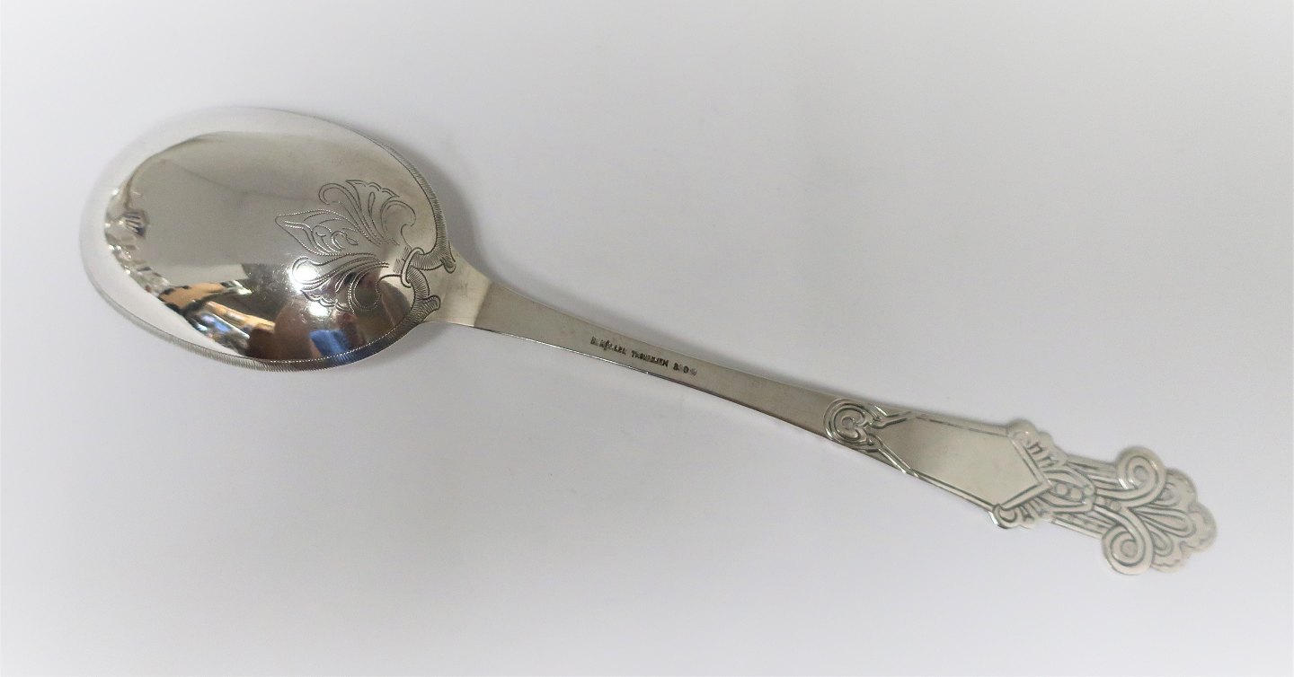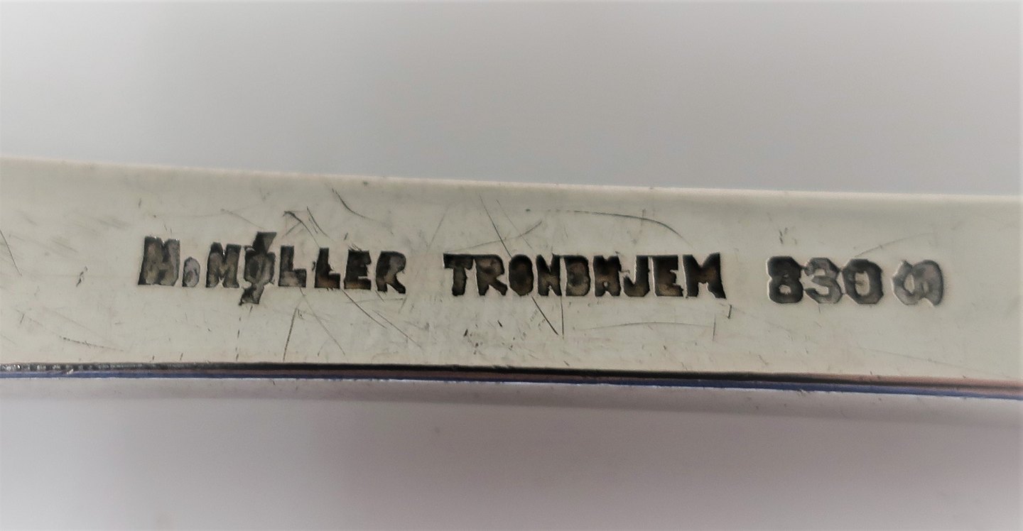 Norge. H. Møller, Trondhjem. Sølv serveringsske (830). Længde 27 cm.