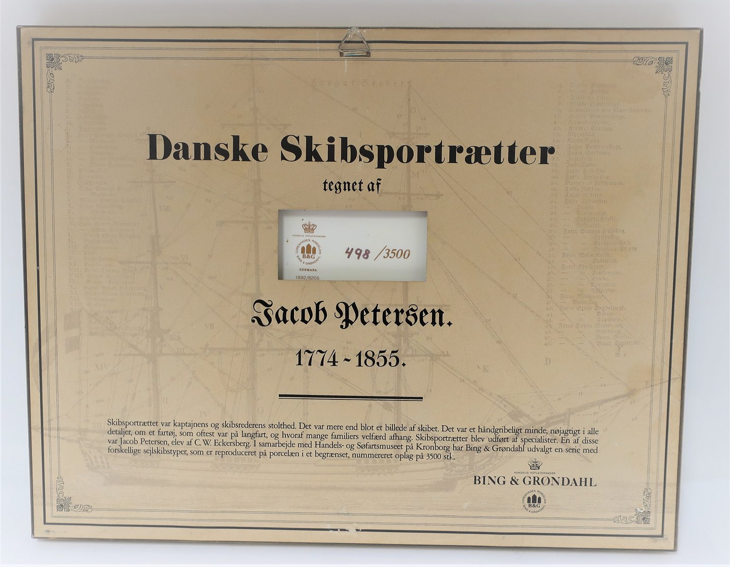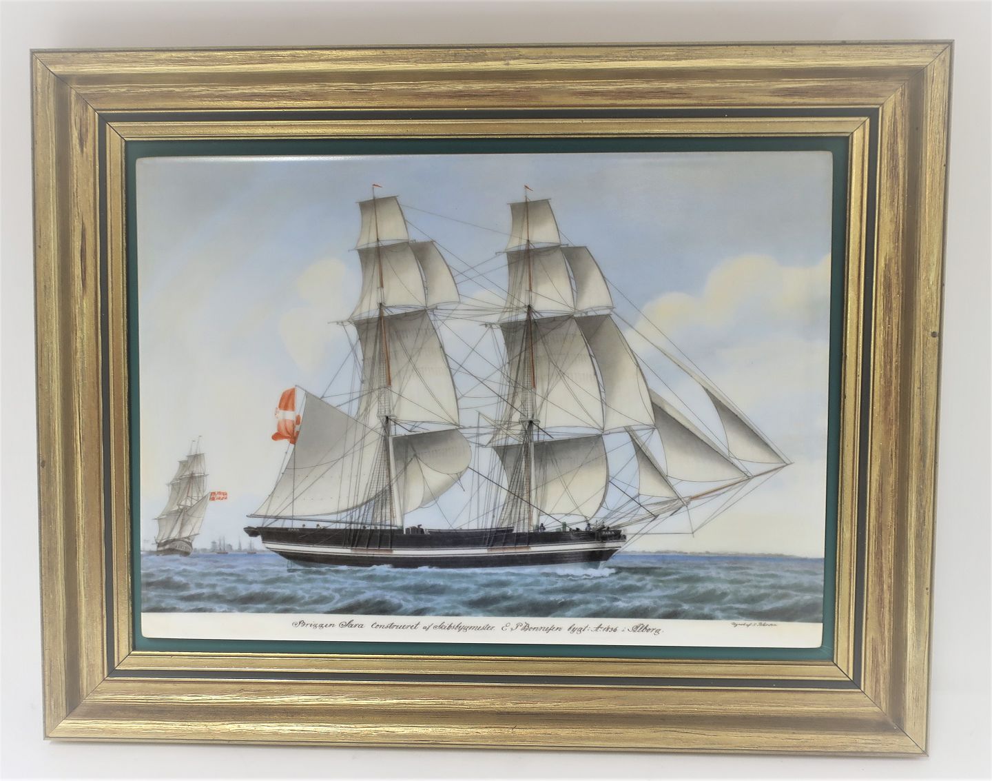 Bing & Grondahl. Porcelain. Danish ship portraits. Picture of Briggen "Sara". Dimensions: Width 38 * 30 cm. 3500 have been produced and this is no. 498.