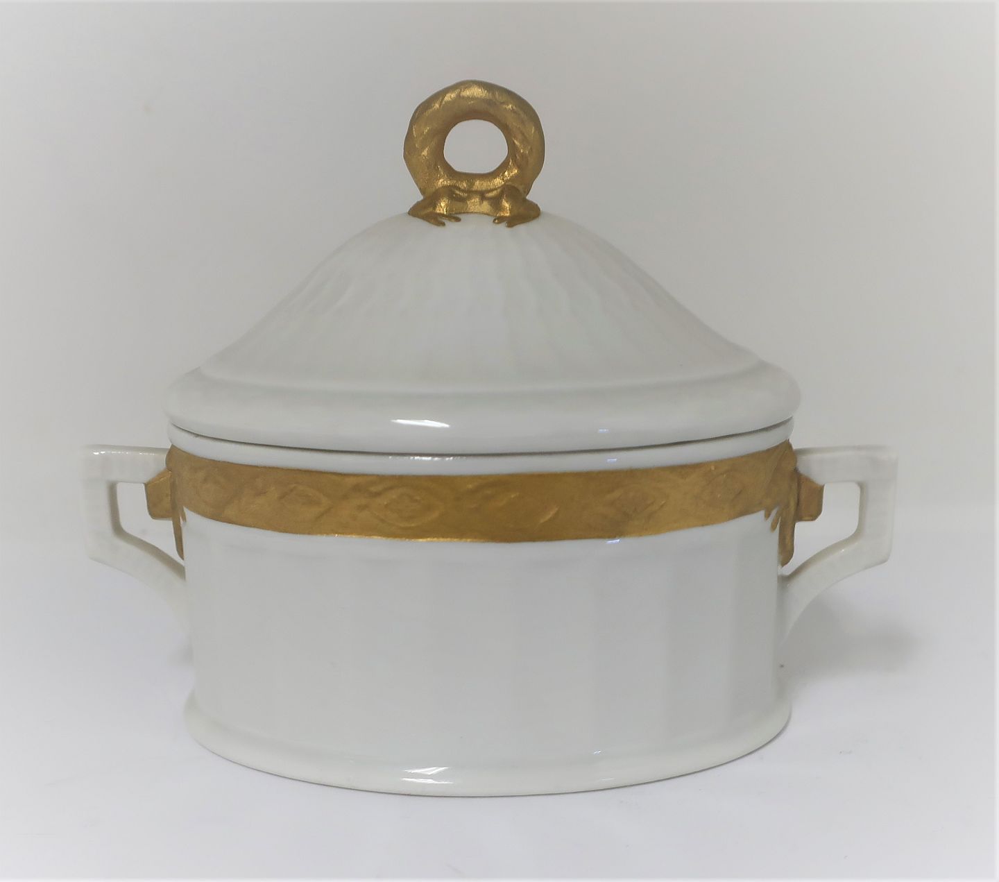 Royal Copenhagen. Fan with gold. Sugar bowl. Model 11561. Length 12.5 cm. (1 quality)