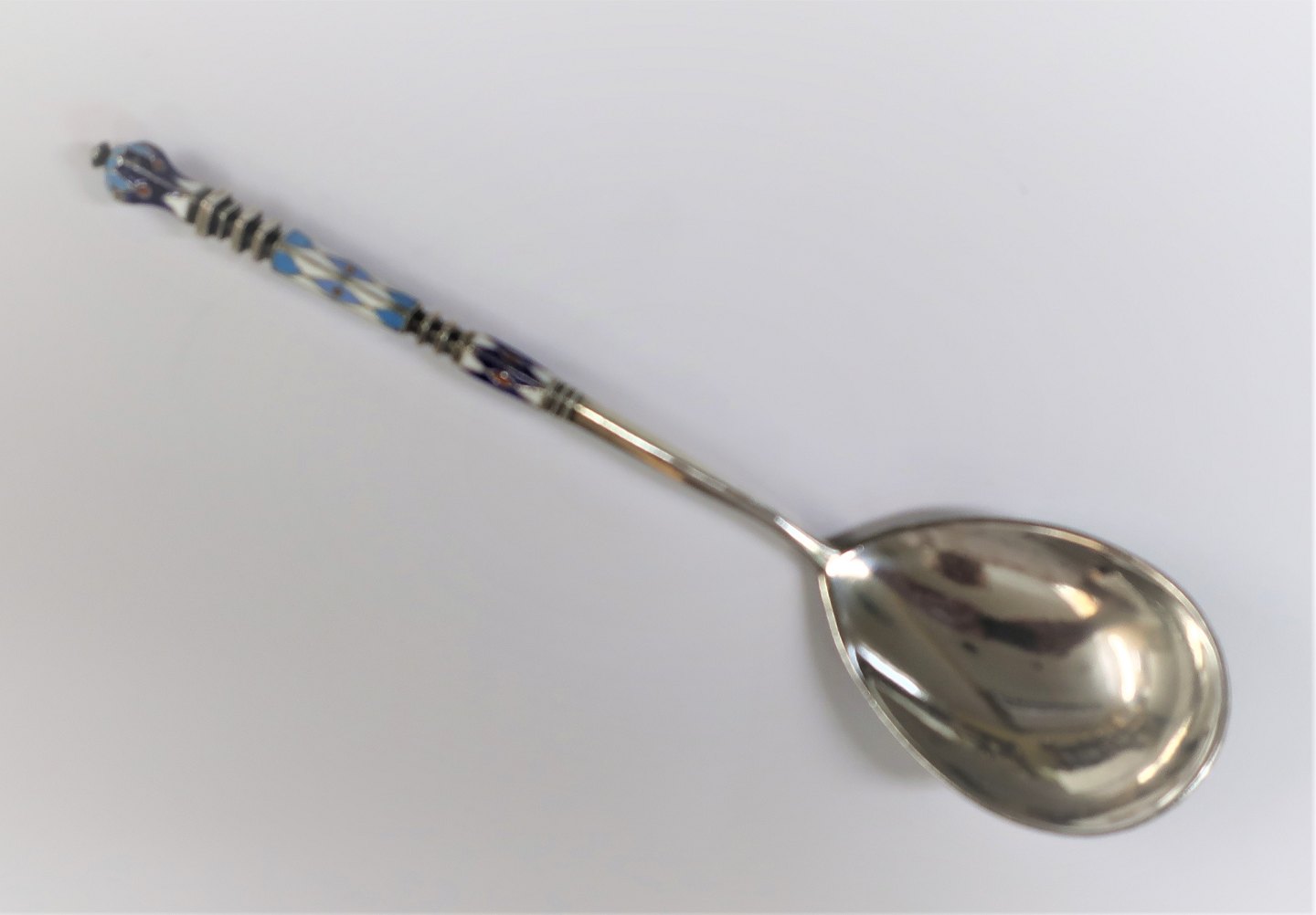 Russian silver spoon (84) with enamel. There are small flaws in the enamel. Length 17 cm.
