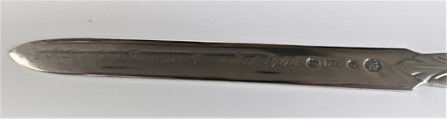 Michelsen. Silver paper knife sterling (925) with enamel. Length 21 cm. Inscription; Prf. P. Dorph of Princess Marie. Jul 1908