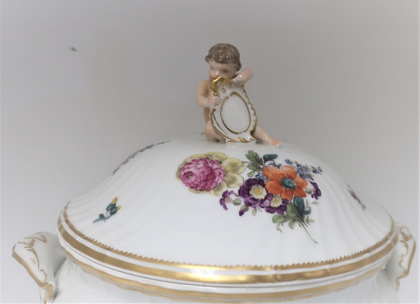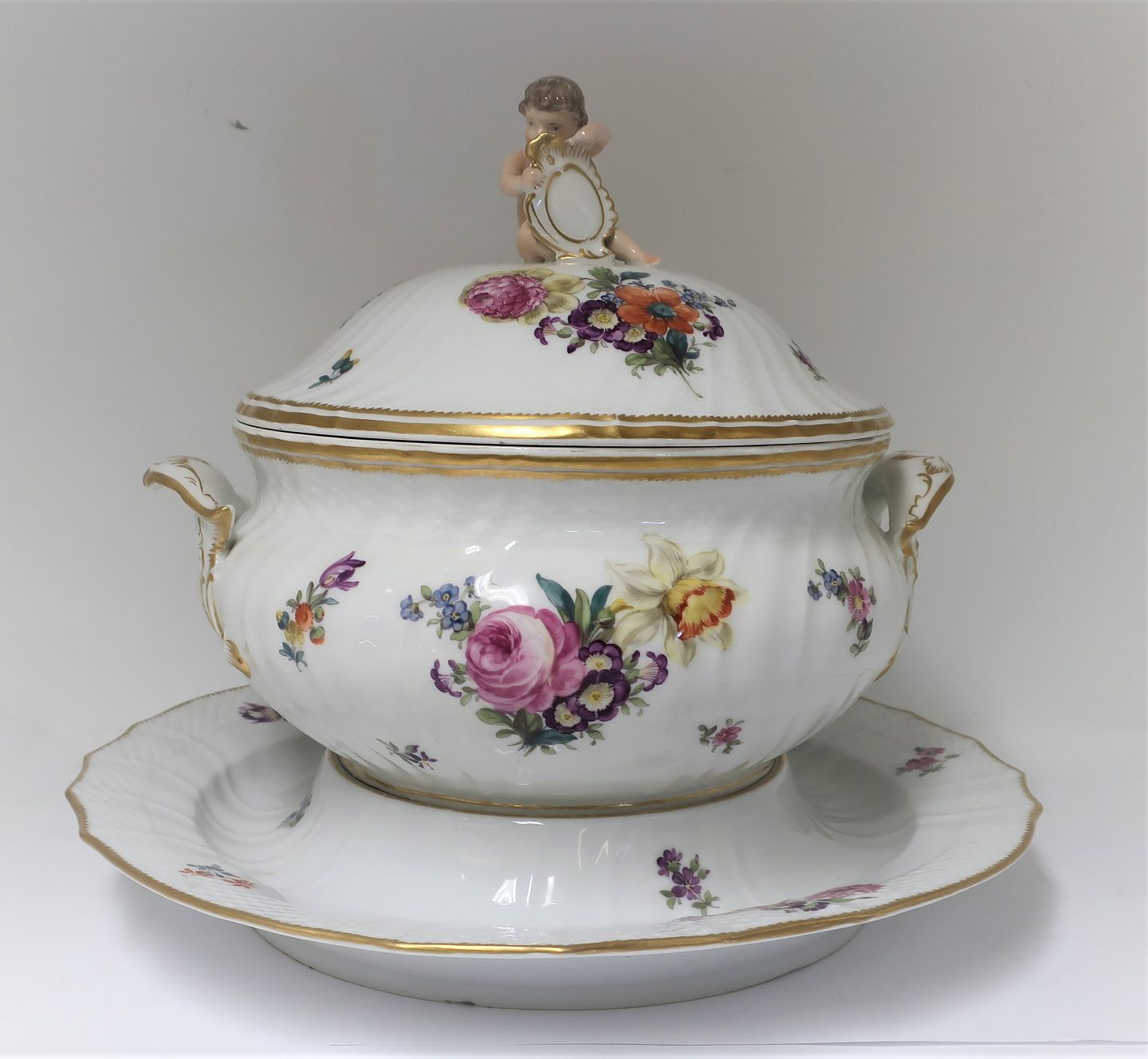 Royal Copenhagen. Saxon flower. Large round tureen with saucer. Height 32 cm. Produced before 1890.