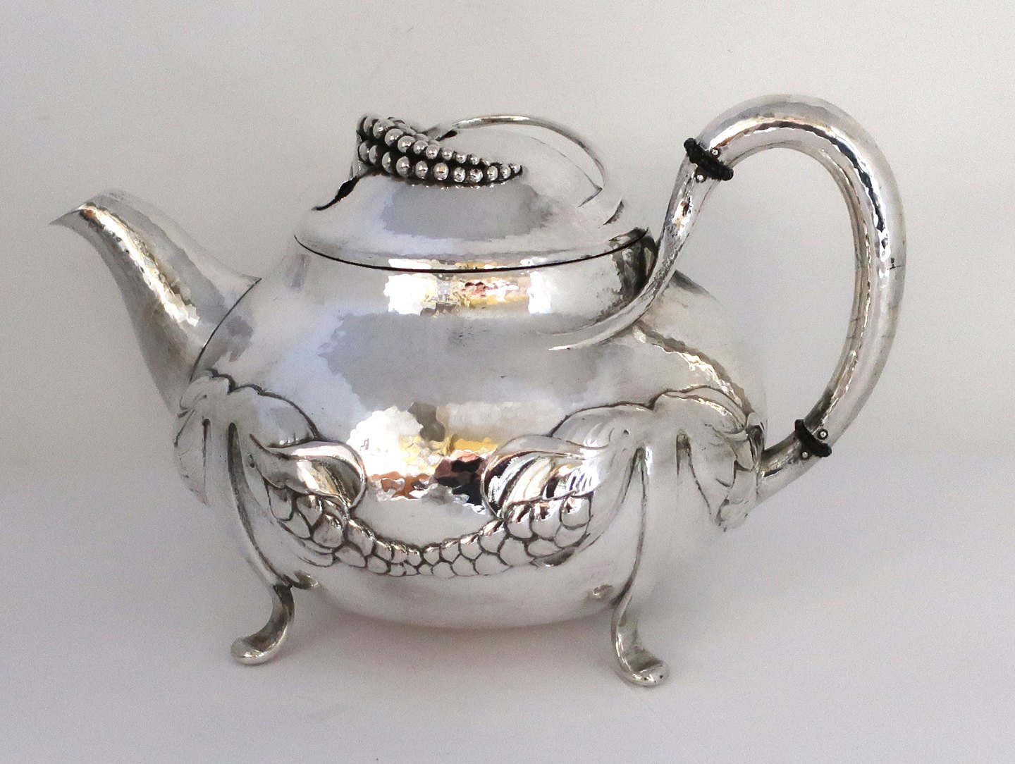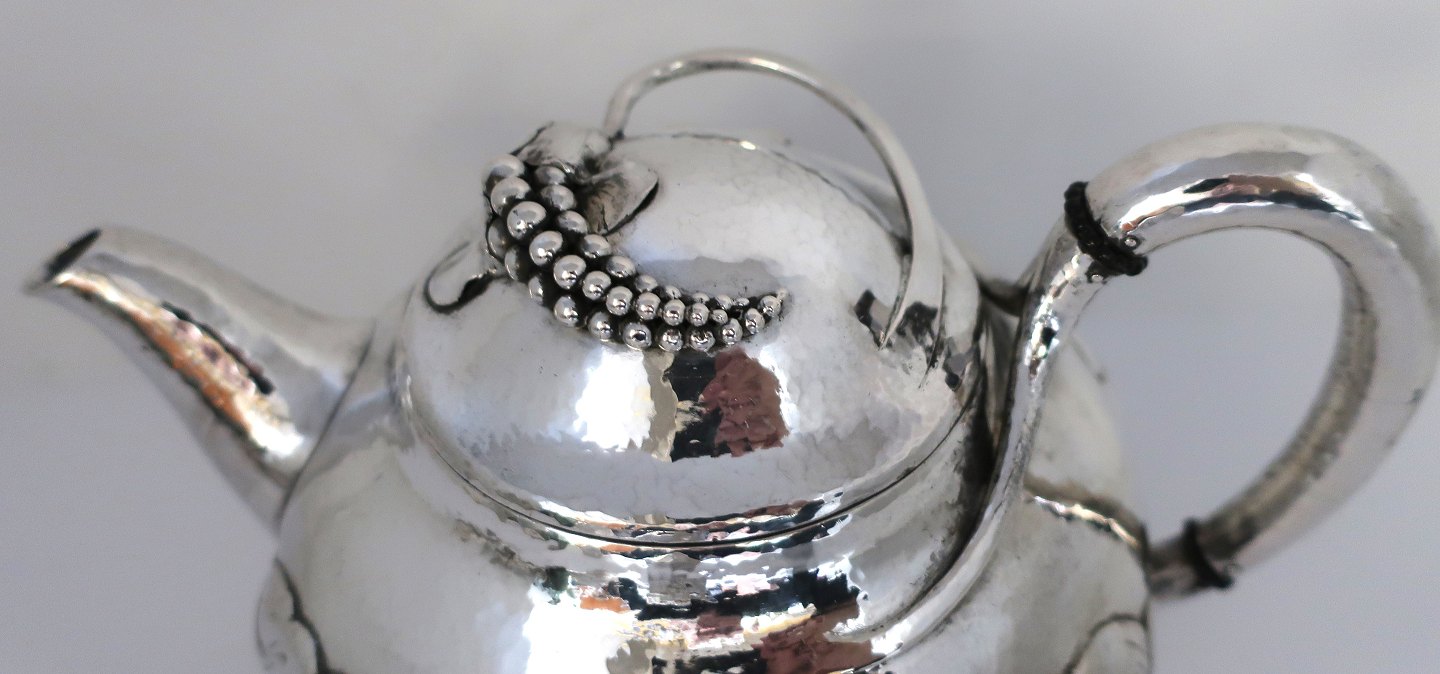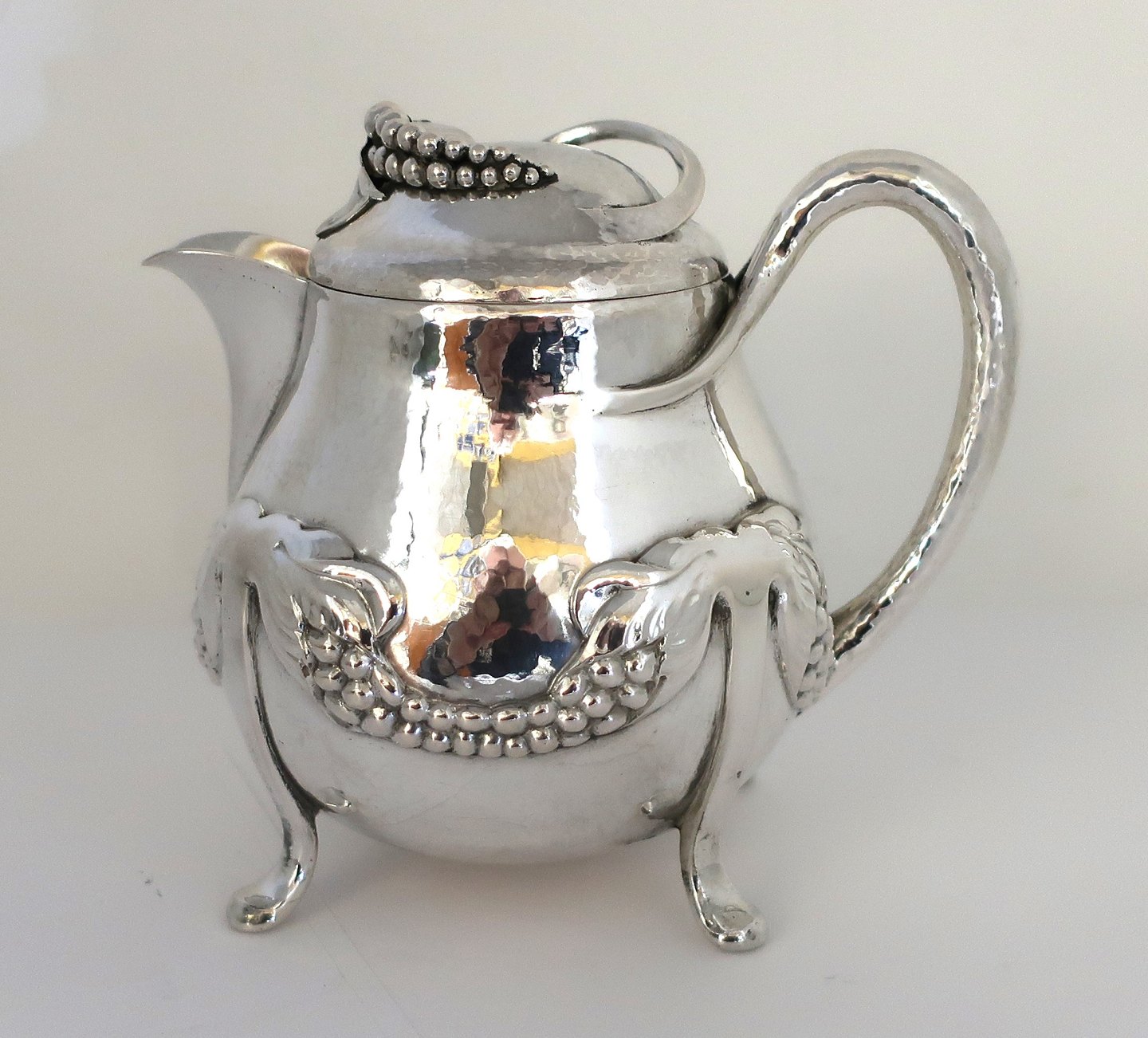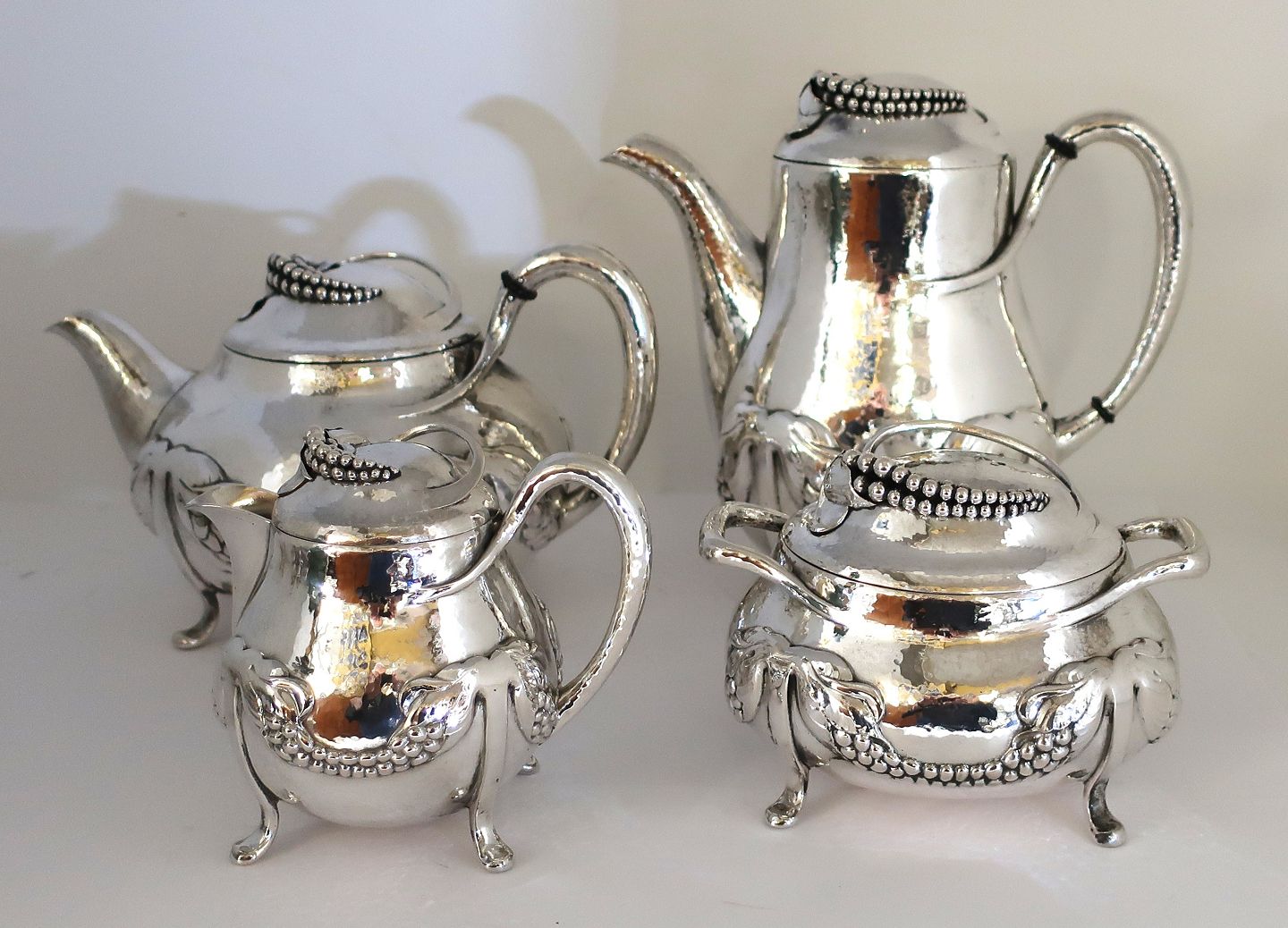 Evald Nielsen. Silver coffee-tea service (830) with grapes. Consisting of coffee pot, teapot, creamer and sugar bowl. Produced 1918 & 1919. A very nice set.