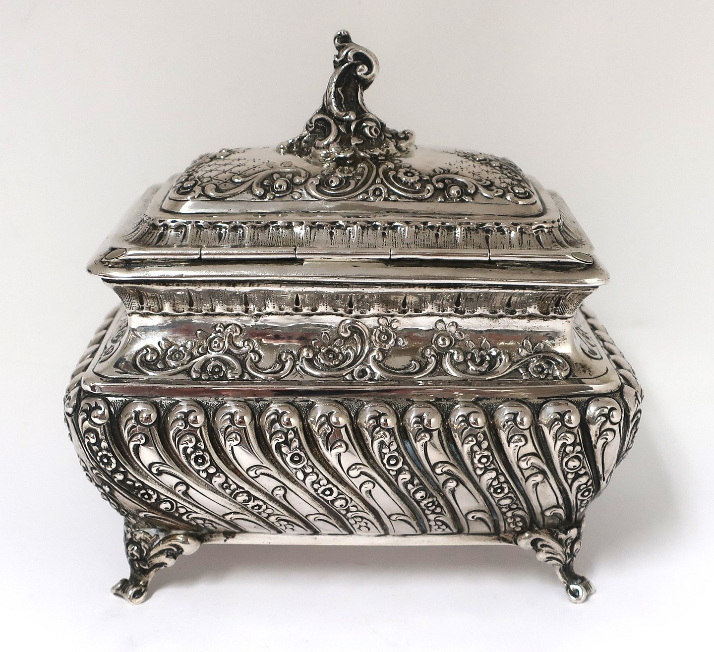 Sølv bonbonniere (830). Højde 13 cm. Længde 14 cm. Bredde 10 cm