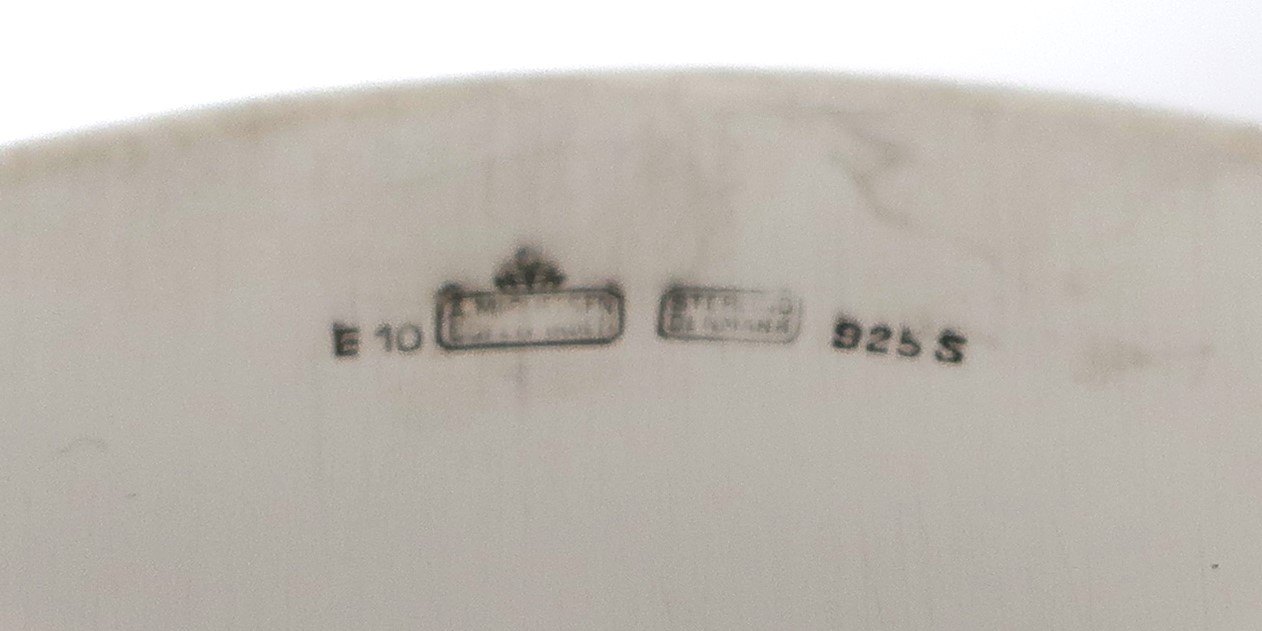 Sterling æske med blå emalje. Længde 9,3 cm. Med F