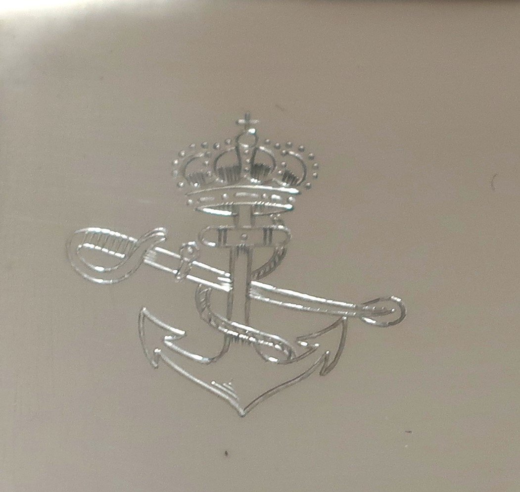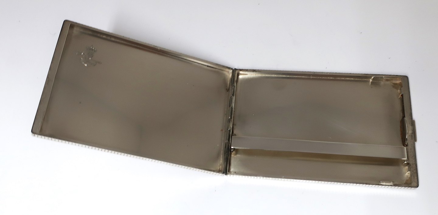 Axel Holm. Sølv cigaretetui (830). Længde 12,5 cm. Bredde 8,3 cm. Med kronet monogram. Proveniens Grev Christian af Rosenborg. (Sorgenfri slot)
