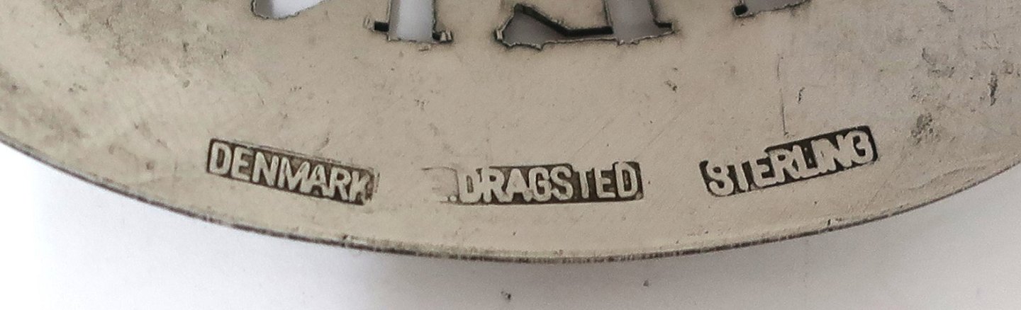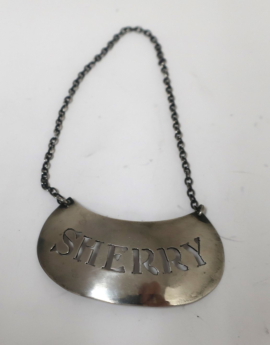 Dragsted. Silver wine label (925). Sherry. Width 5 cm.