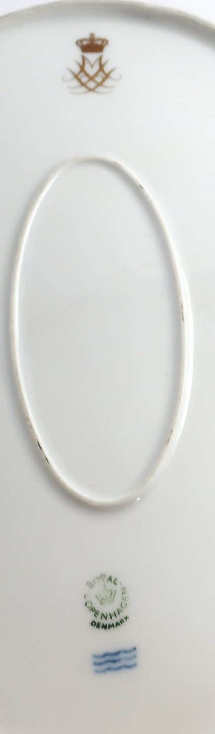 Royal Copenhagen. Oval serving dish / bowl with Queen Margrethe's monogram. Length 36.5 cm. Width 28.5 cm. Height 6.5 cm. (1 quality)