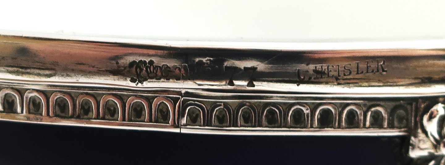 C. Heisler. Tysk blå glas skål med sølvmontering (800). Diameter 18 cm. Højde 7,5 cm.