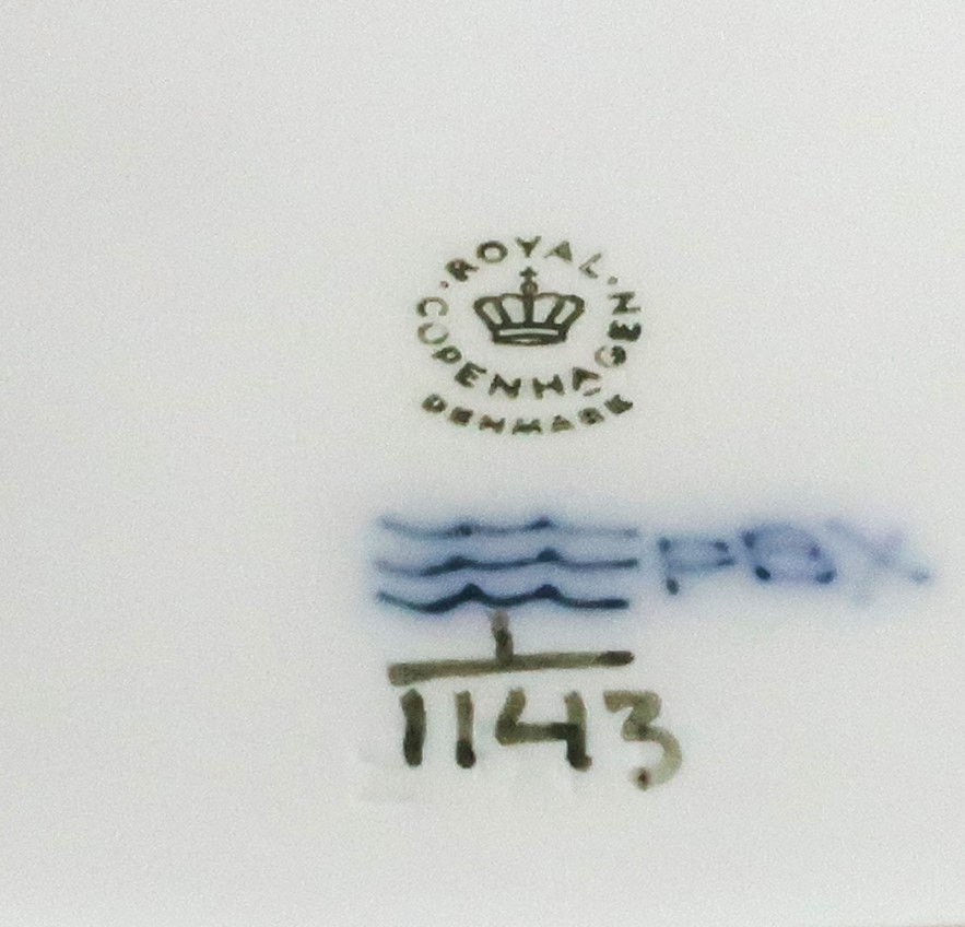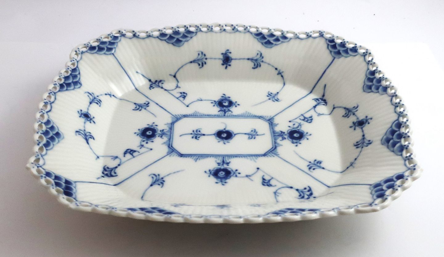 Royal Copenhagen. Musselmalet Halvblonde. Brødbakke. Model 1143. Længde 26 cm. Bredde 22 cm. (1 sortering).