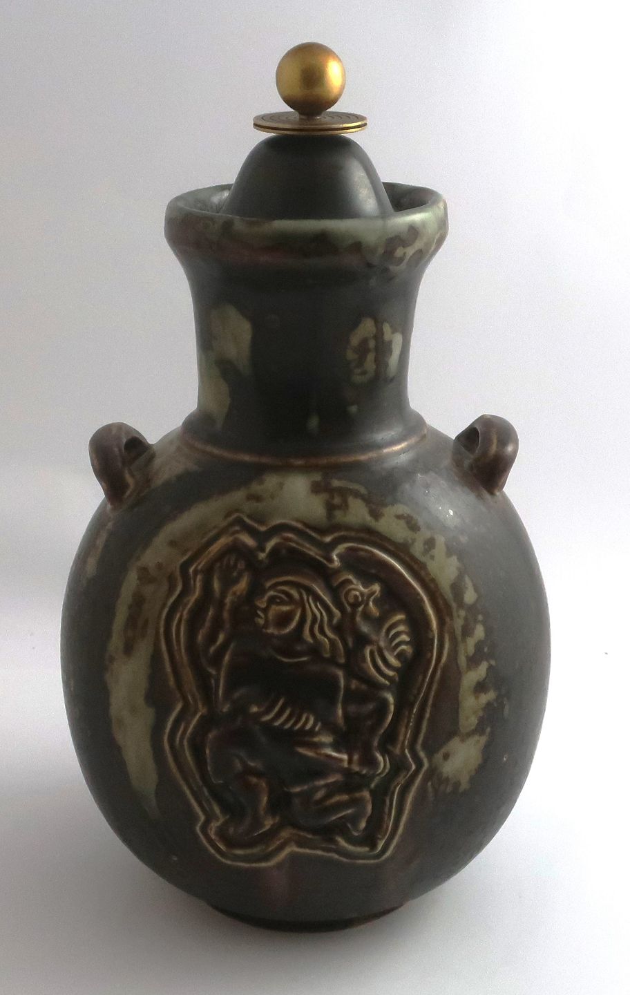 Royal Copenhagen. Stentøj. Vase. Model 2938 med bronze låg. Bode Willumsen. Højde 25 cm. (1 sortering)