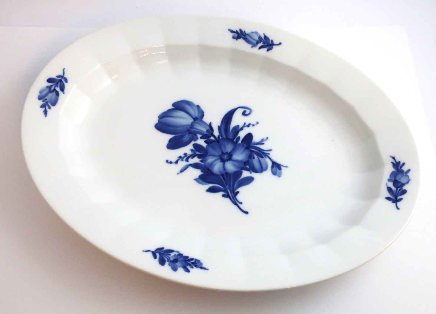 Royal Copenhagen. Blå blomst, kantet. Ovalt fad. Model 8538. Længde 34 cm. (1 sortering)