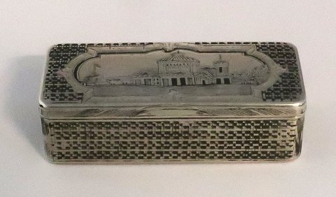 Glaskrus med sølvlåg (830). Højde 11 cm. Diameter 7 cm.