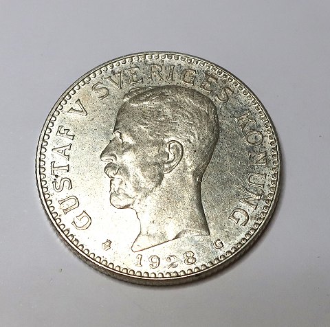 Sverige. Gustav V. Sølv 2 krone 1928.