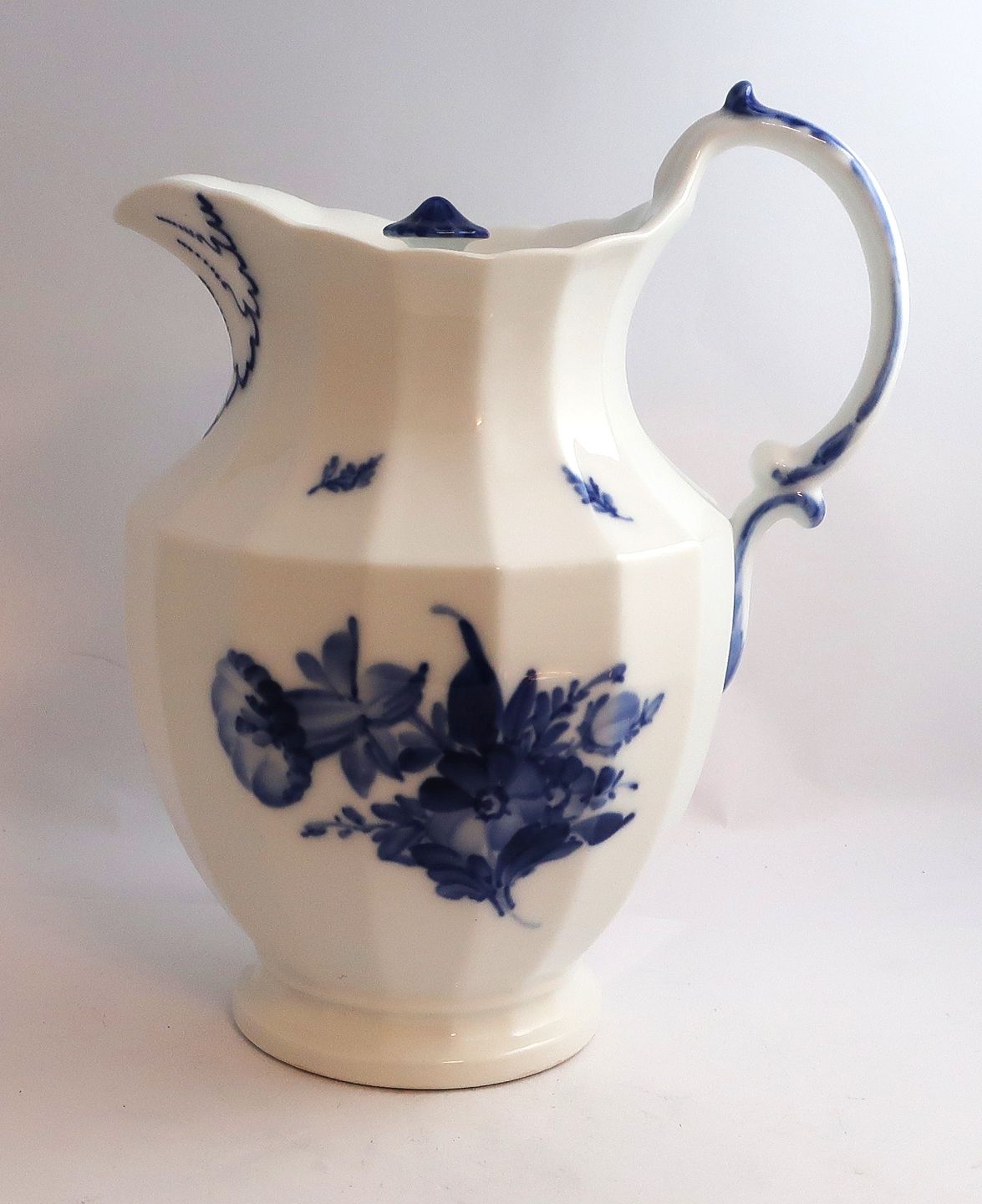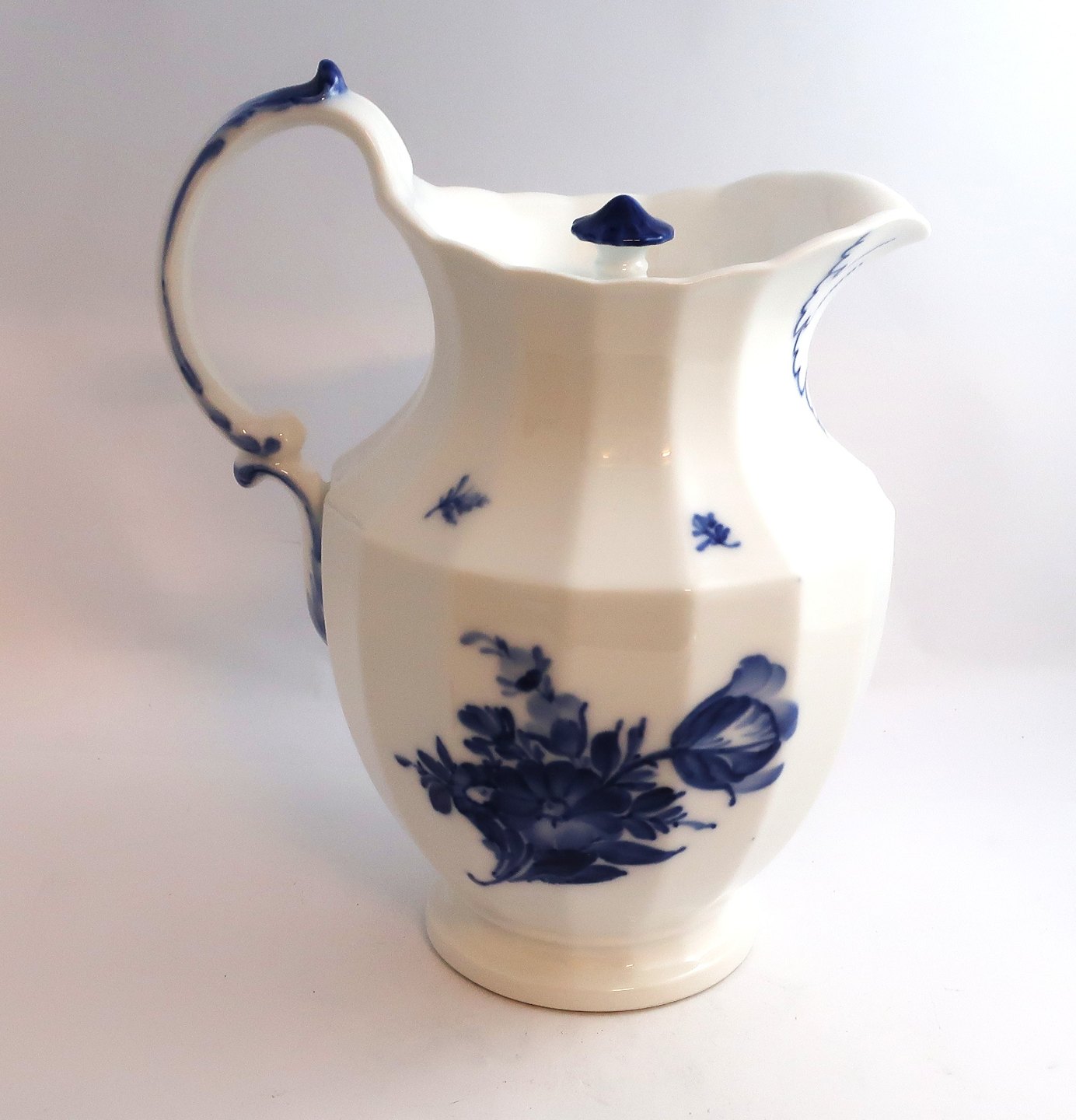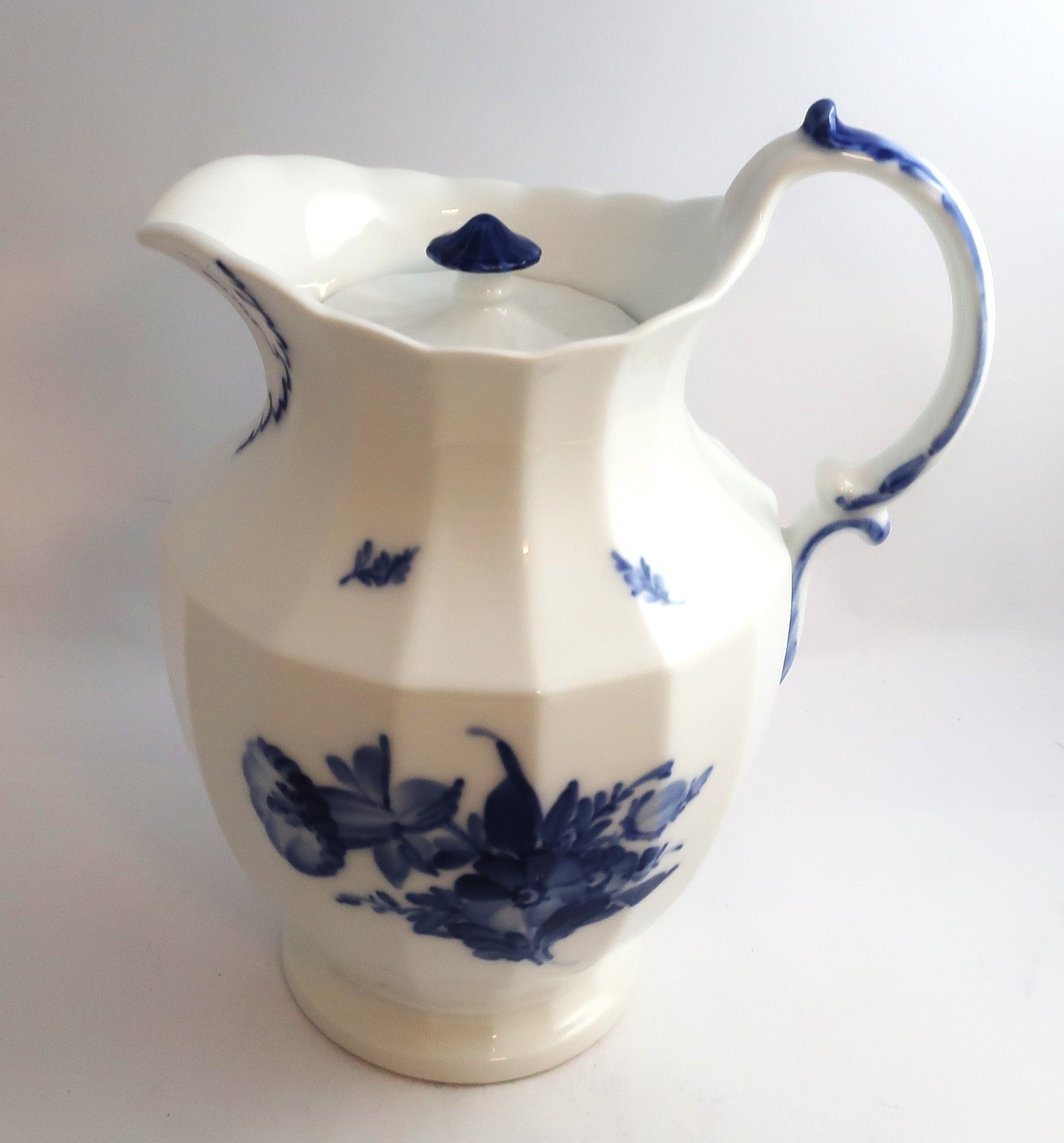 Royal Copenhagen. Blå blomst, kantet. Chokoladekande. Model 8606. Højde 24,5 cm. (2 sortering)