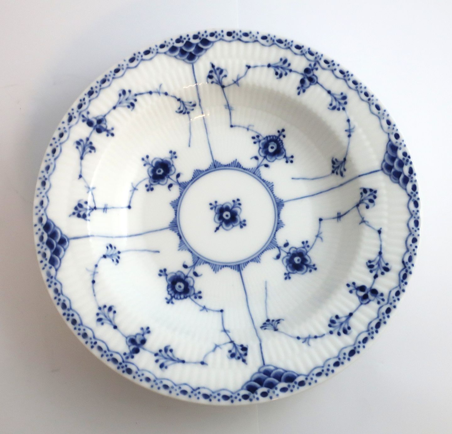 Royal Copenhagen. Blue fluted, half lace. Deep plate. Model 566. Diameter 21.5 cm. (1 quality)