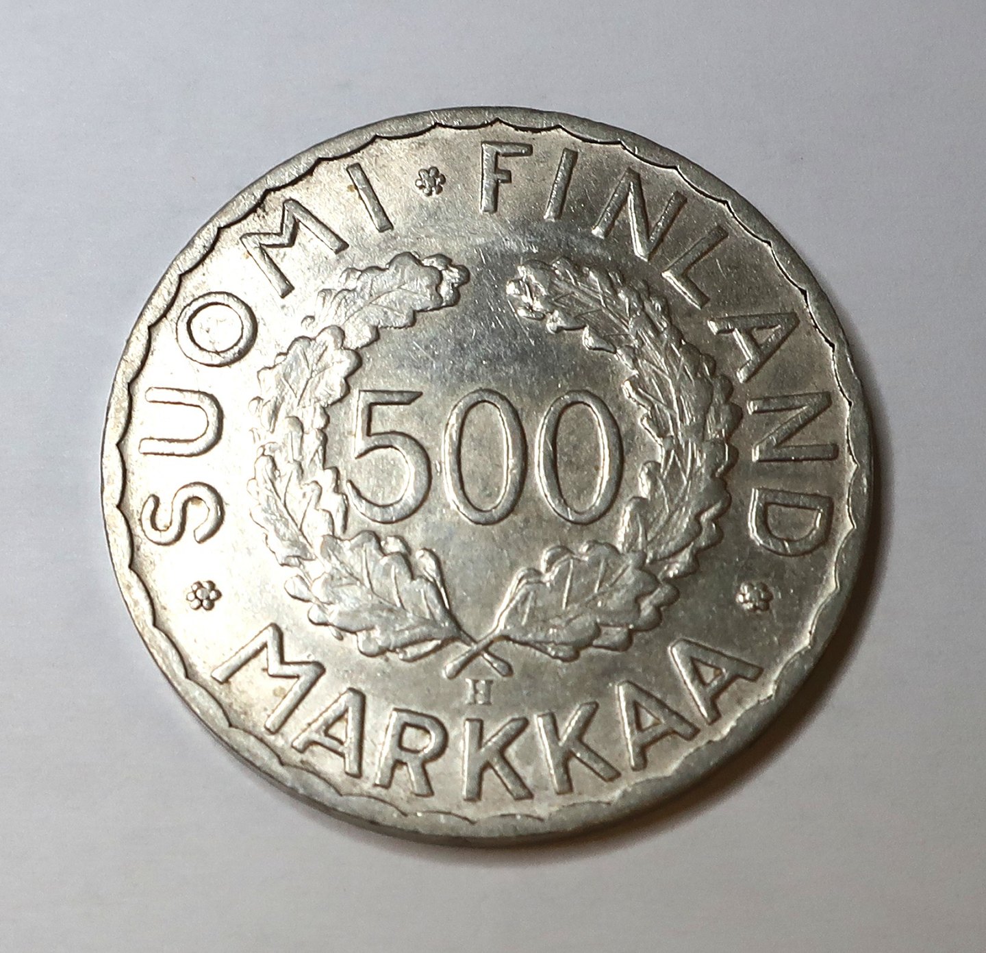 Finland. Sølv 500 Mark 1952. Olympiaden Helsingfors