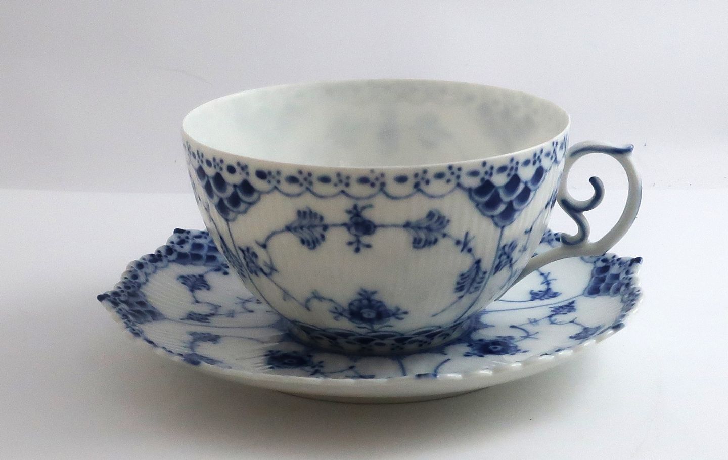 Royal Copenhagen. Blue Fluted, full Lace. Large Teacup. Model 1142. (2 quality).