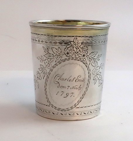 England. Henry Chawner, London (H C). Sterling salt cellar / spice cellar. Gilded inside. Height 7 cm. Width 14 cm. Produced 1787