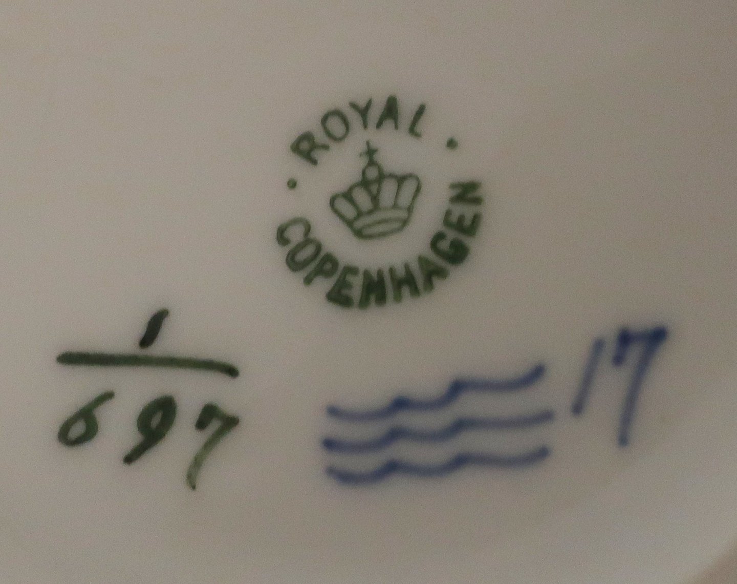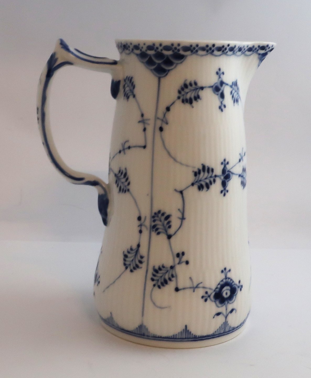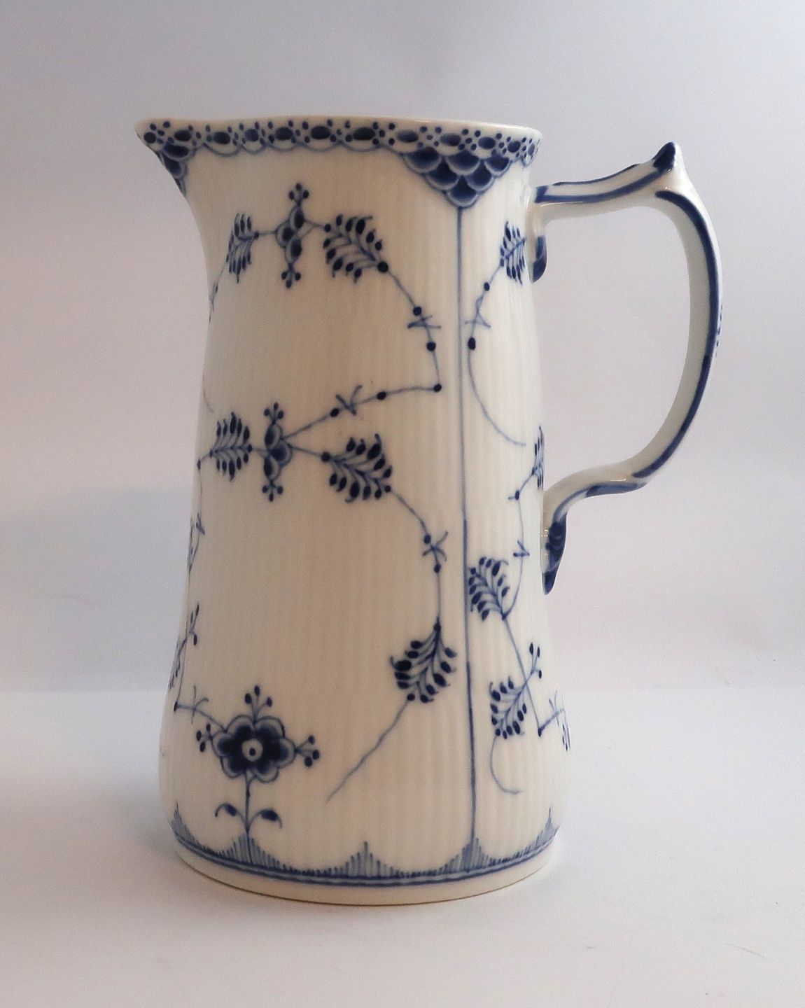 Royal Copenhagen. Musselmalet, halvblonde. Mælkekande. Model 697. Højde 18,2 cm. (1 sortering). Produceret før 1923