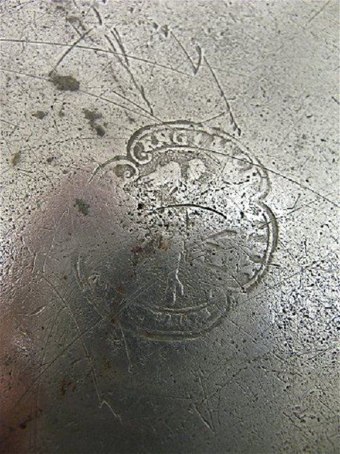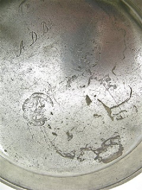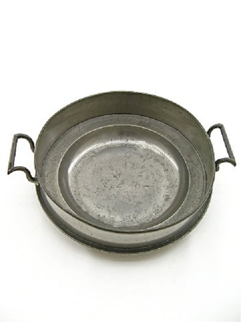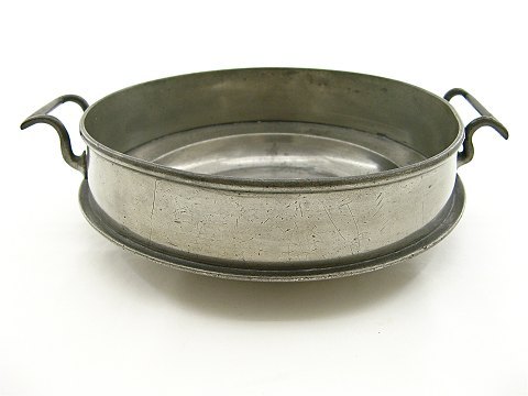 1800-tals tinfad med hanke højde 7,5 cm. dia. 23 cm.
