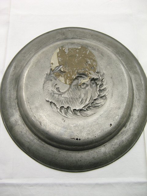 1800-tals tin fad med motiv af fisk dia. 34,5 cm.