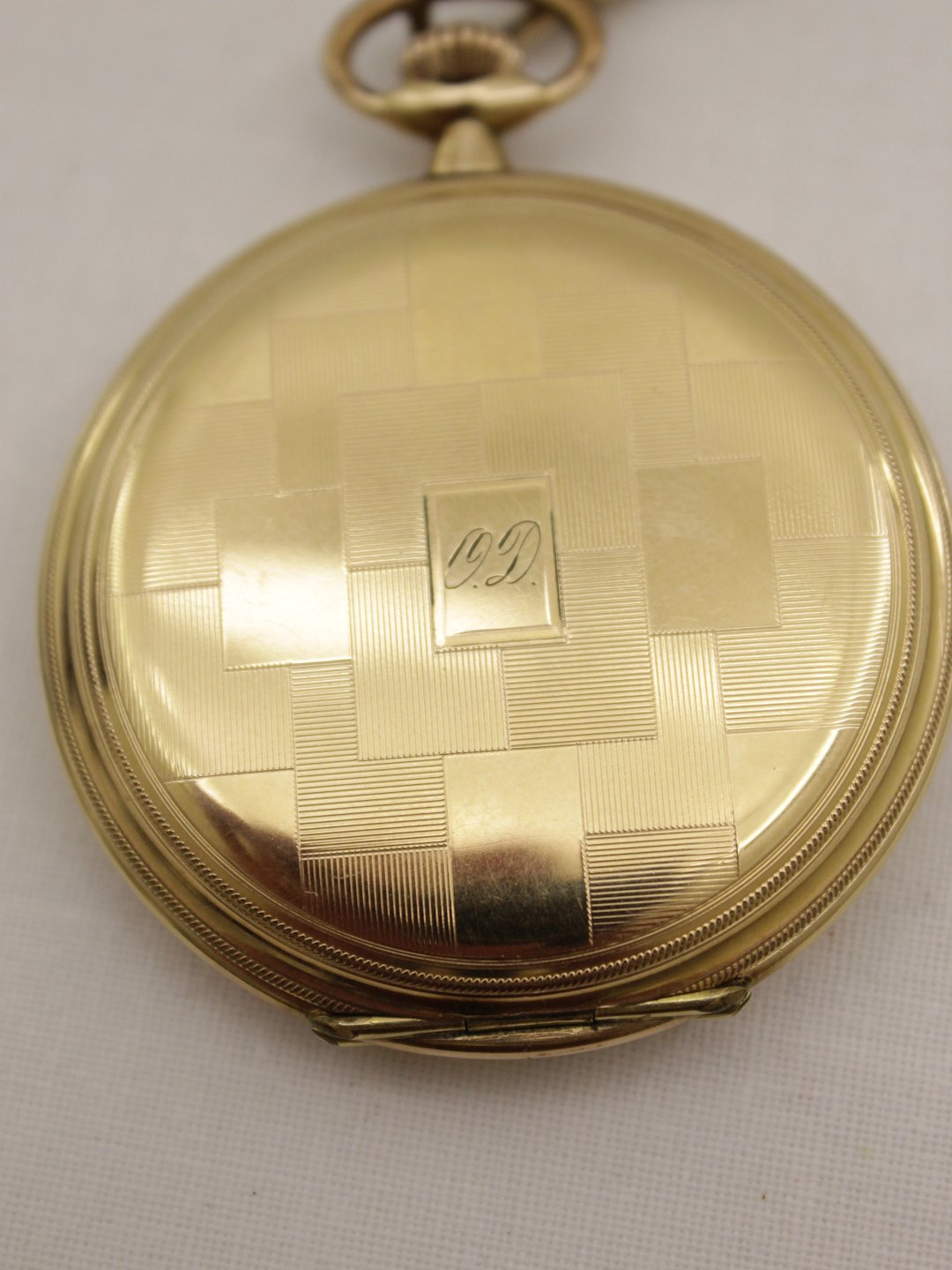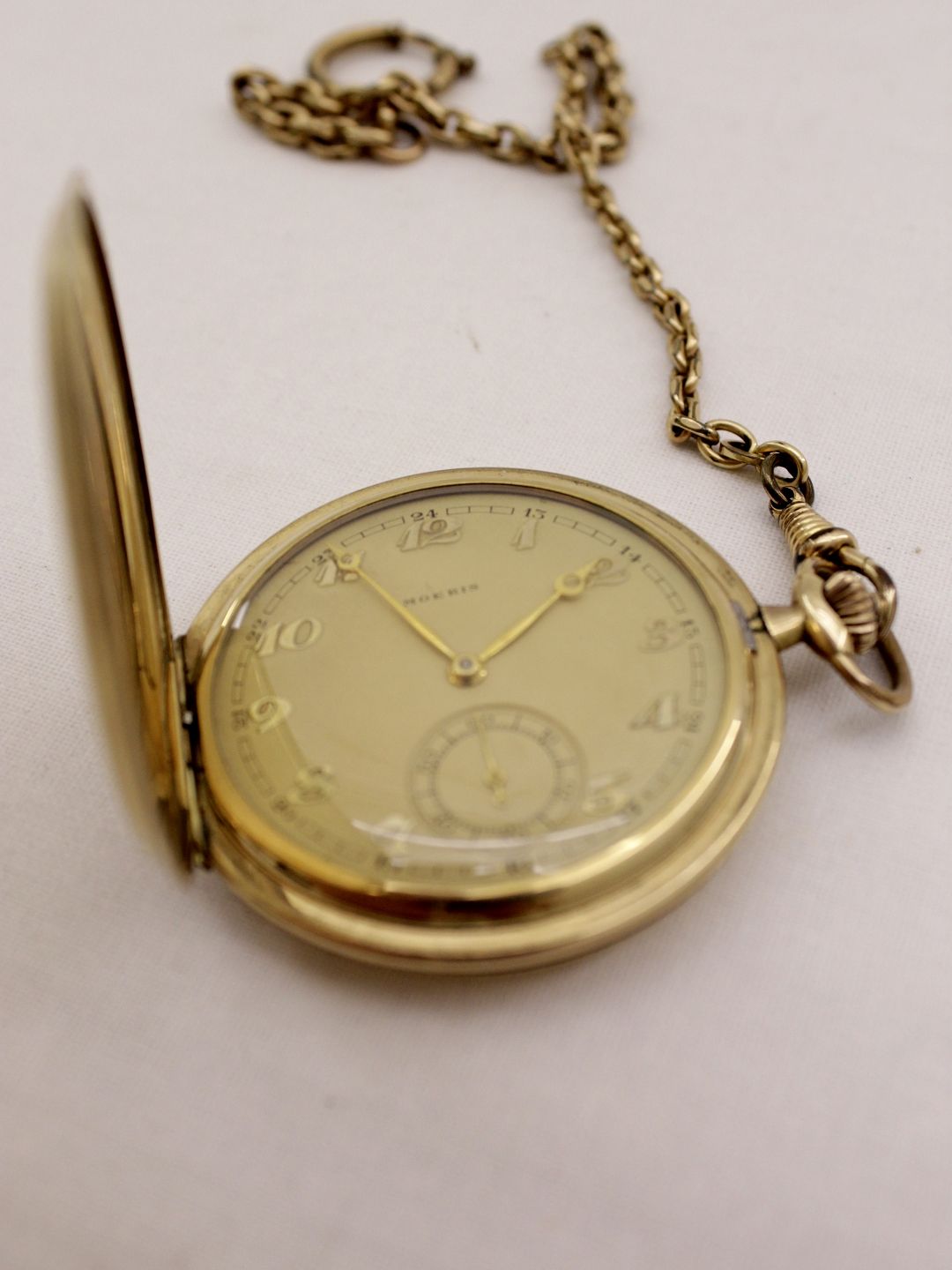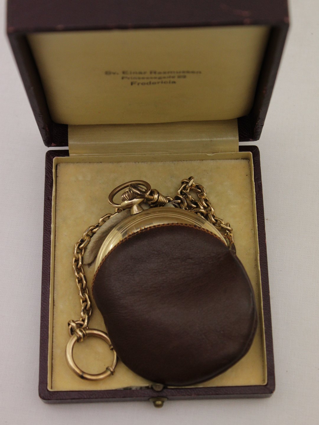 Dobbeltkapslet Moeris guld double lommeur dia. 5 cm. med kæde Nr. 283531